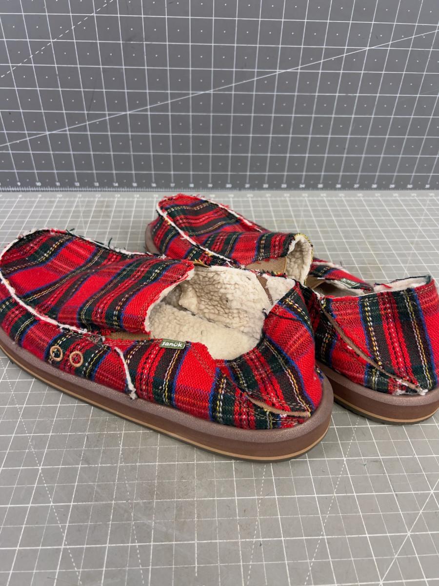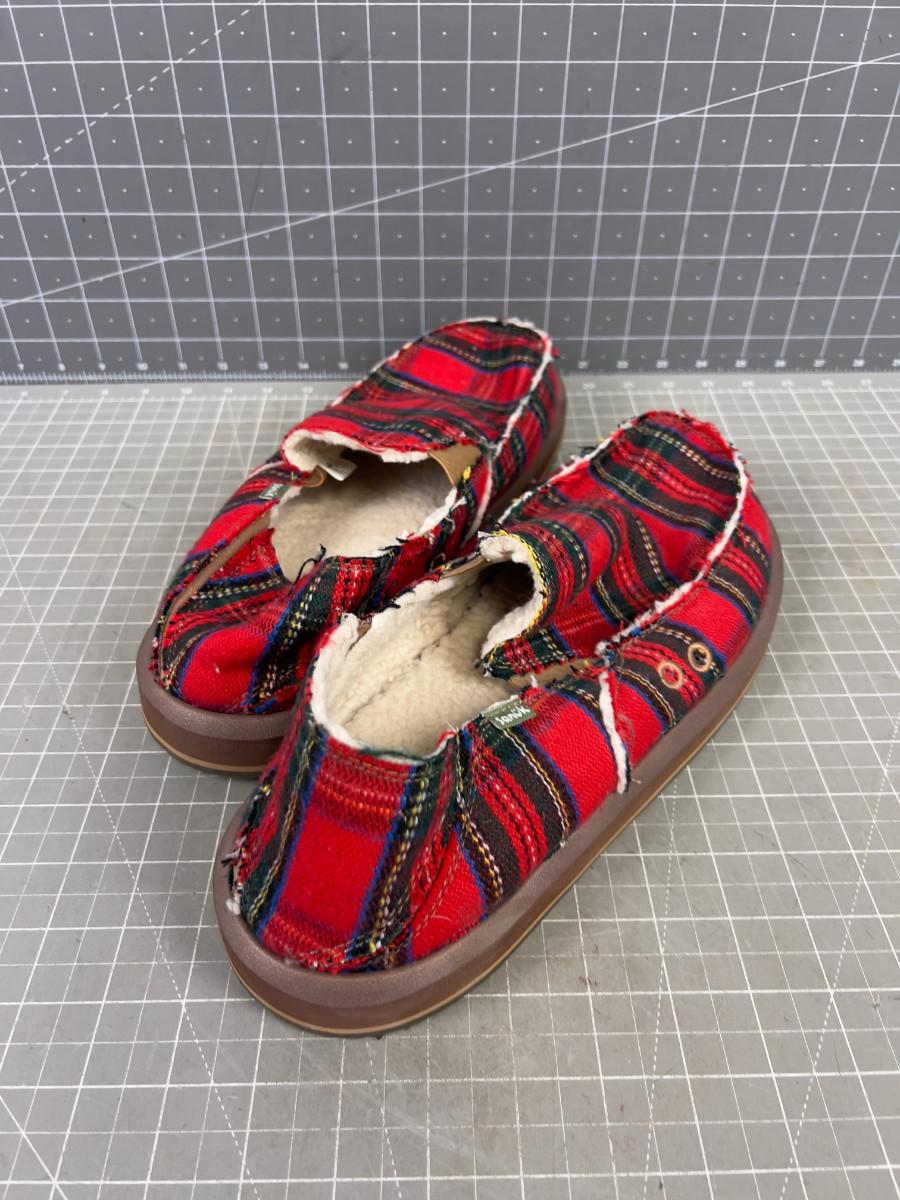MEN'S SANUK Plaid Slippers Red Tartan Size 12