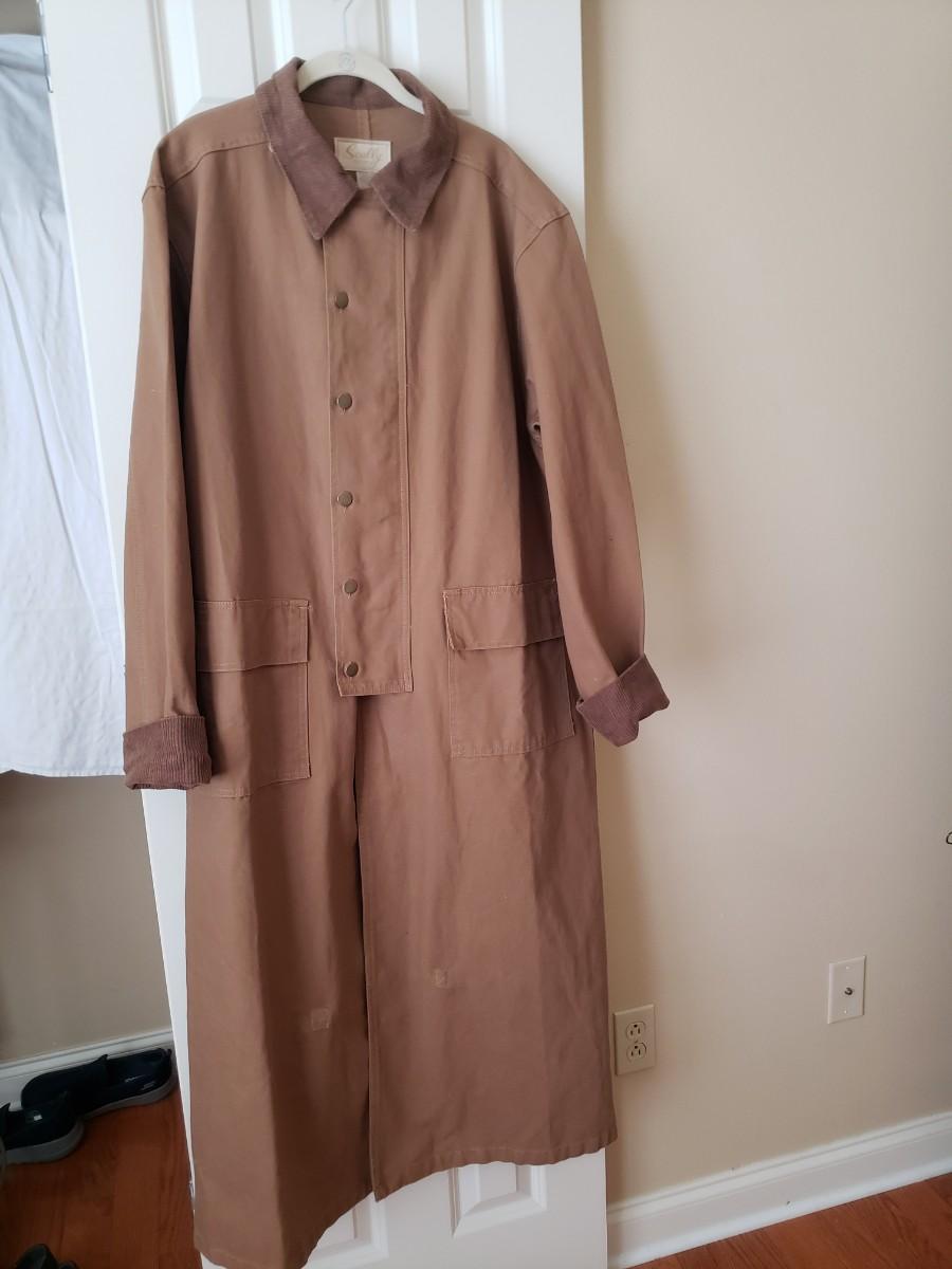 Mens Sully Ranchero canvas duster. Range wear. Corduroy cuffs & collar. Size M