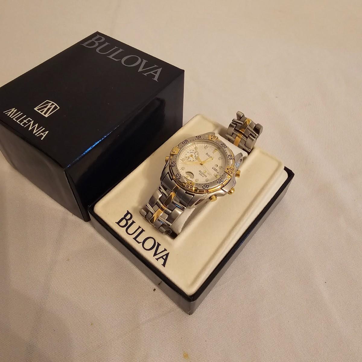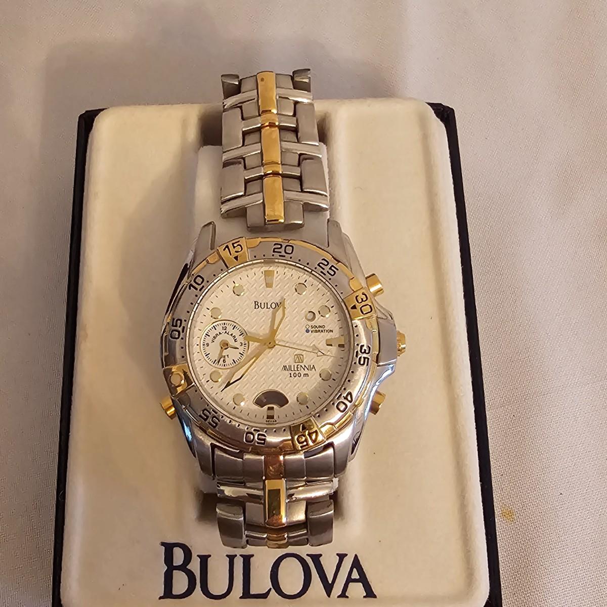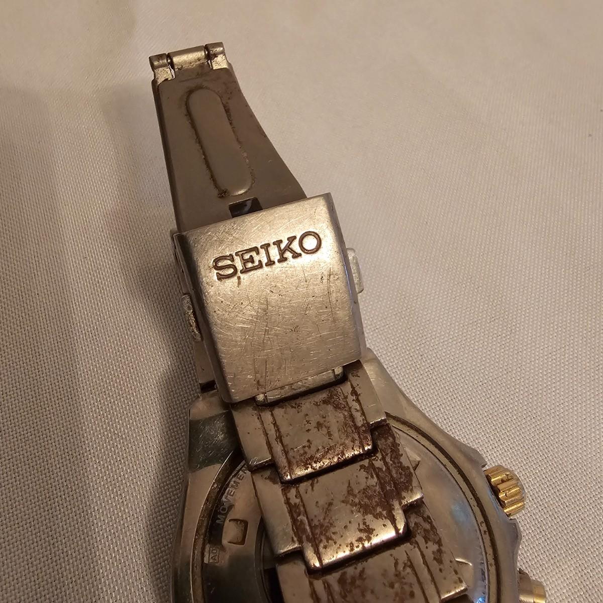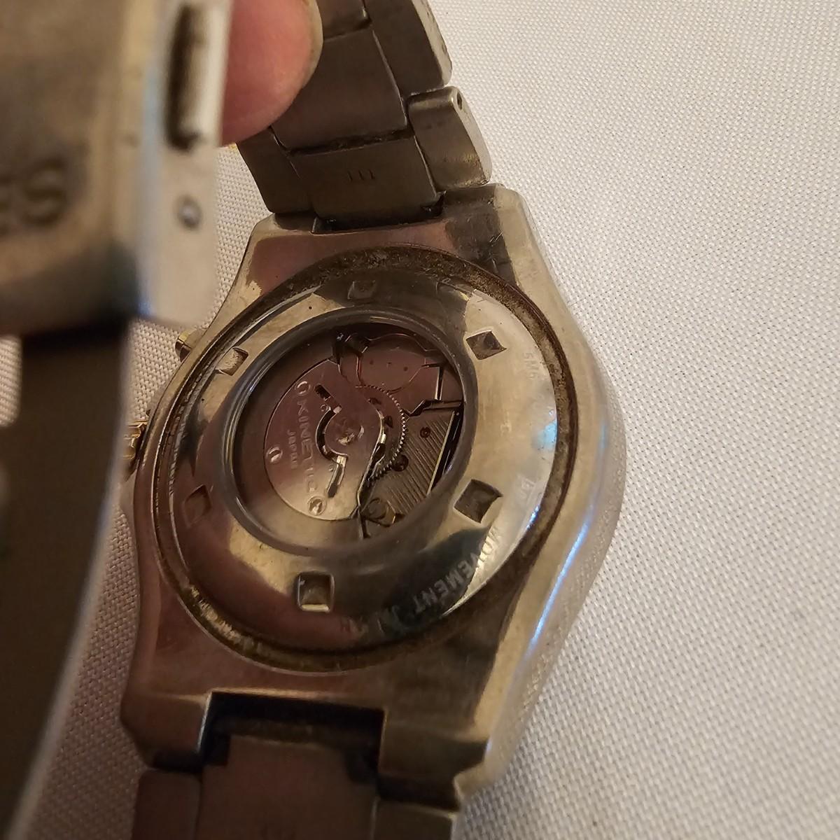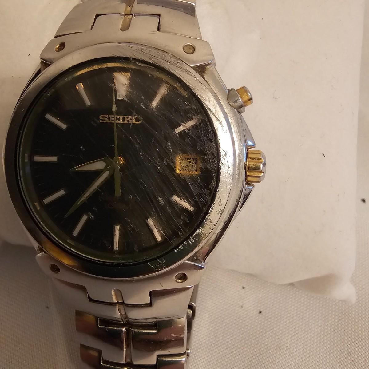 A trio of men's watches, two by Seiko and one by Bulova. One is a Seiko Kinetic Titanium. Band and crystal are in need of good cleaning. Sized for small wrist, no box. Second Seiko is a Kinetic also in box with manual. Band needs reattached and it has extra links. Crystal and case very scratched. Third watch is a Bulova Millenia with case. Has links for band which is currently detached on one end. The Seiko Kinetic appears to be ticking, but we cannot verify it's working condition. It is unknown if either of the other two watches would be in working order if serviced. See photos for details. Shipping available. All sales are final. No returns or refunds. Please bid accordingly.
