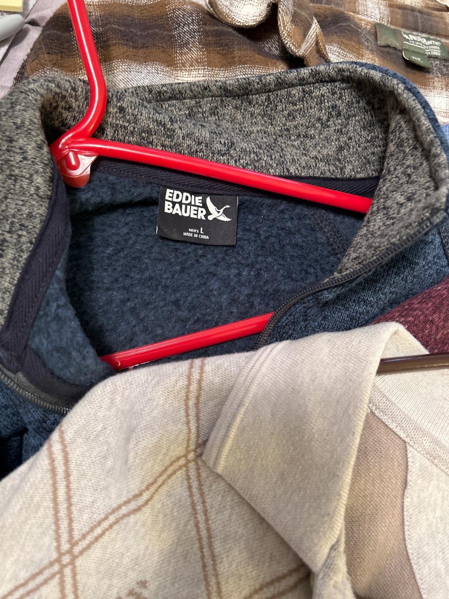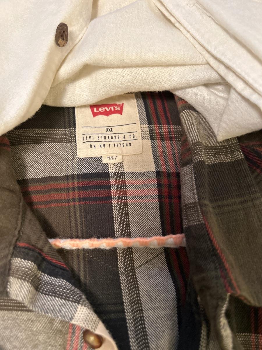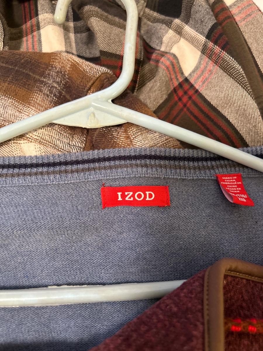 Haggar, Eddie Bauer, Izod, Levi’s, Gander Mountain and arrow. Size range from large to XXL.