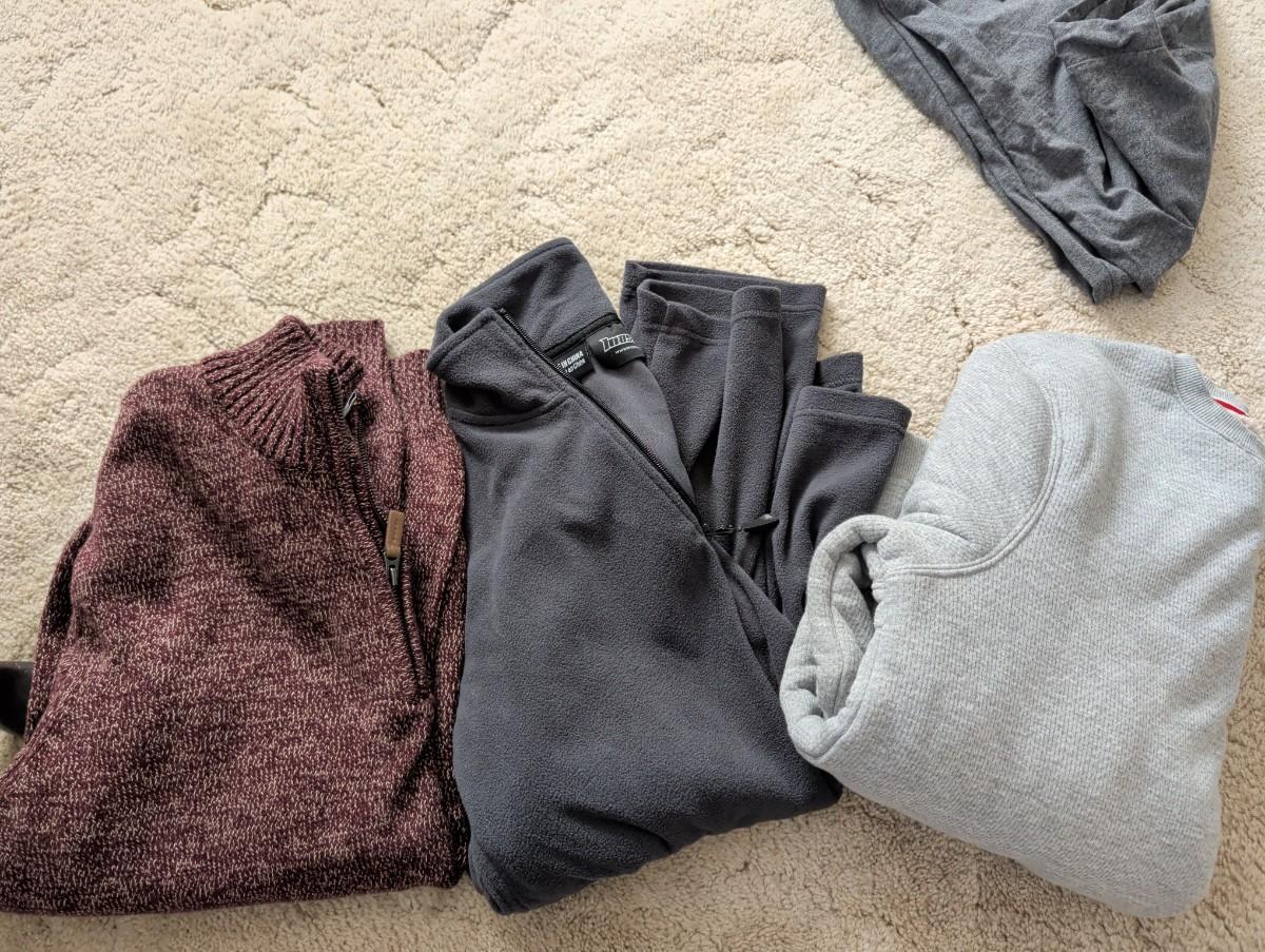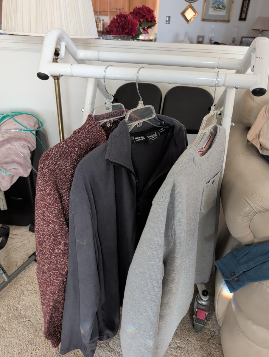 Three men's shirts, St. John's Bay XL, Mossi XL, Coleman Lg