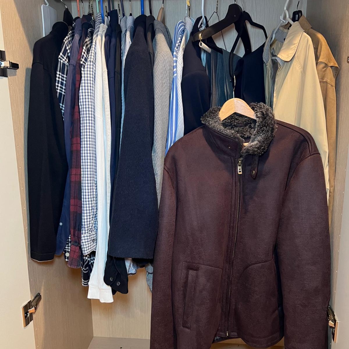 Large lot of men’s clothing in size medium and large with some great brand names. Included are ten plus long sleeve cotton shirts, a Rogue brand faux fur lined jacket and a three piece suit plus more. See images for size/brand labels when found. None of the dress pants or suits had size labels; the three piece suit jacket measures 21” chest x 31” long and pants 33” waist x 31” inseam, rest of pants appear to be the same size approximately.