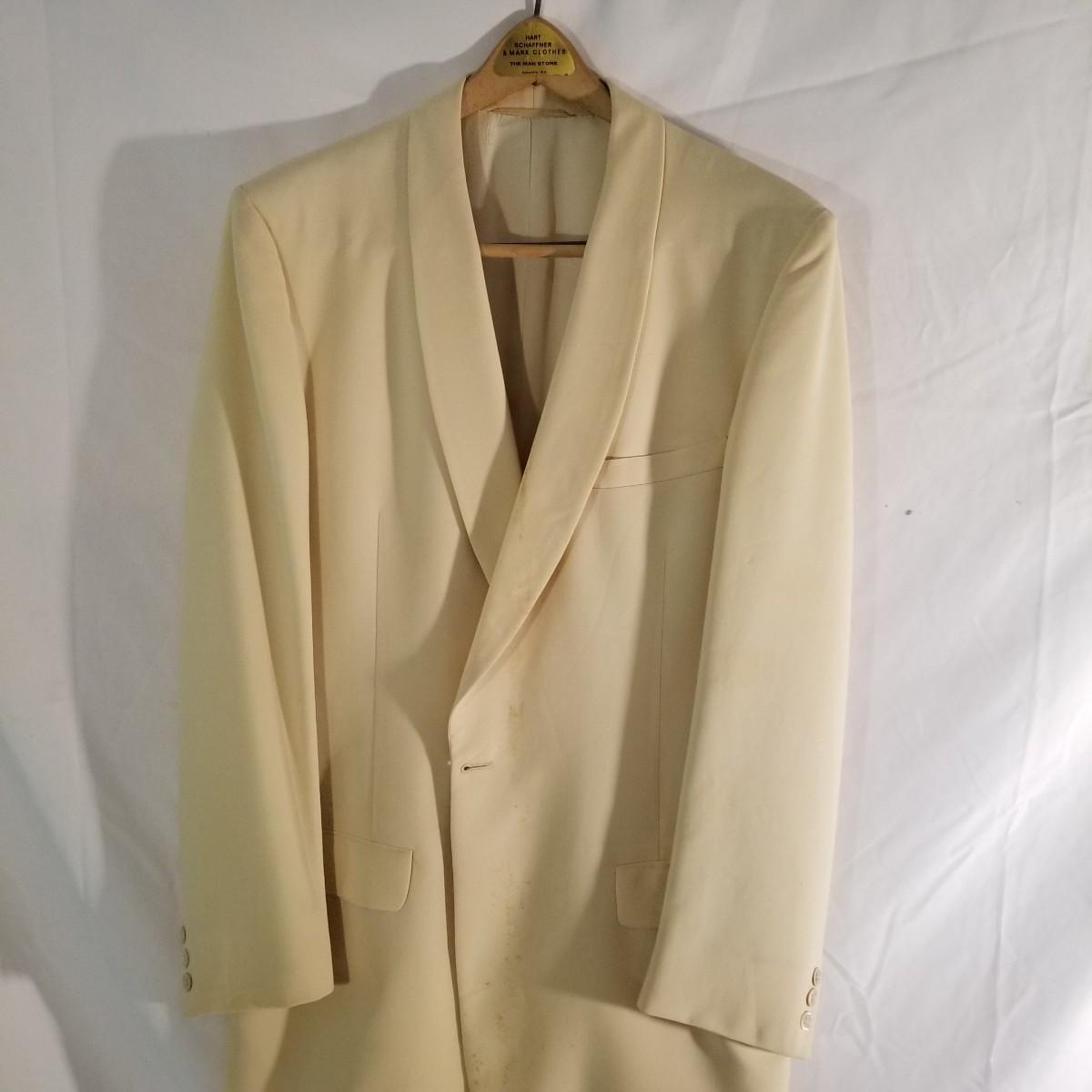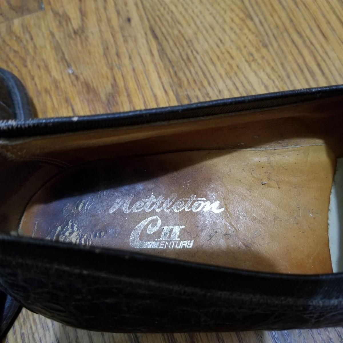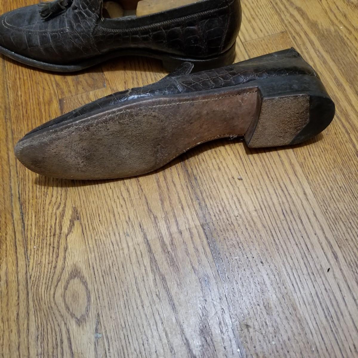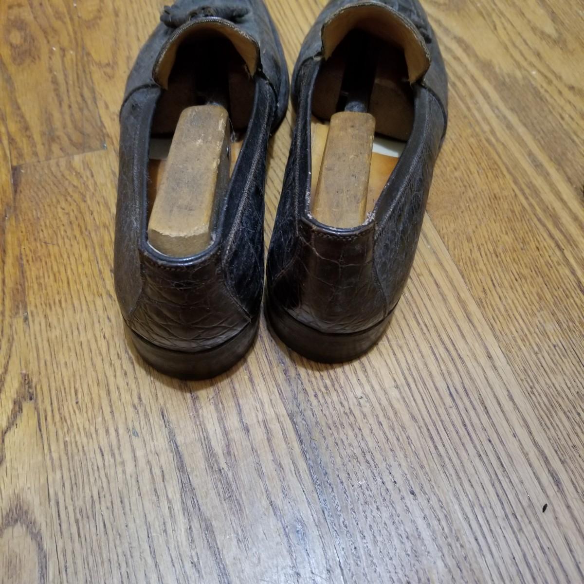 A collection of men's clothing items. Three shirts, two jackets, three pairs of tasseled shoes, thirty dress ties.  Sizes X-large. The shoes are size 10.5. Men's sport coat has some discoloring, see photos. Local Pickup Only.