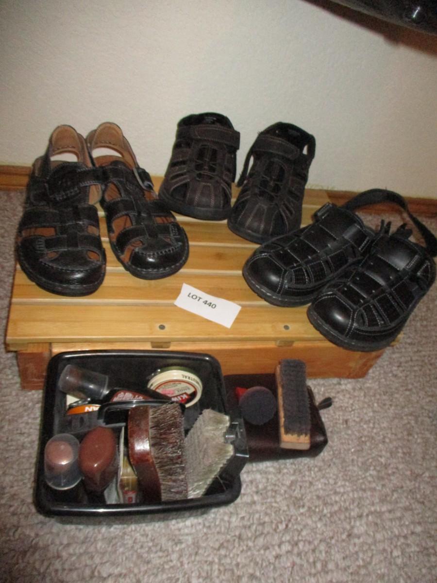 Size 9med. Great condition. 3pr. Shoe shine supplies. Wooden stand.