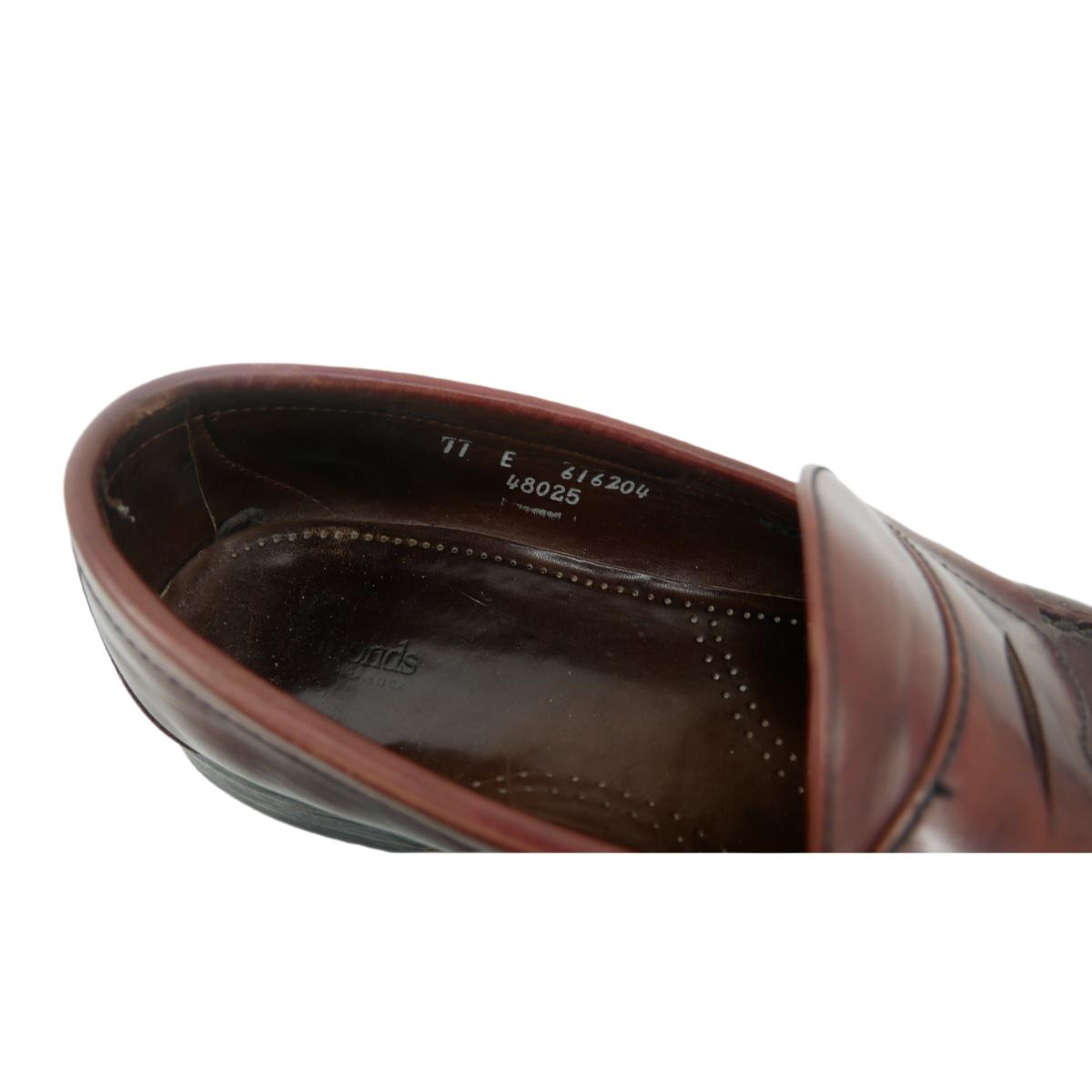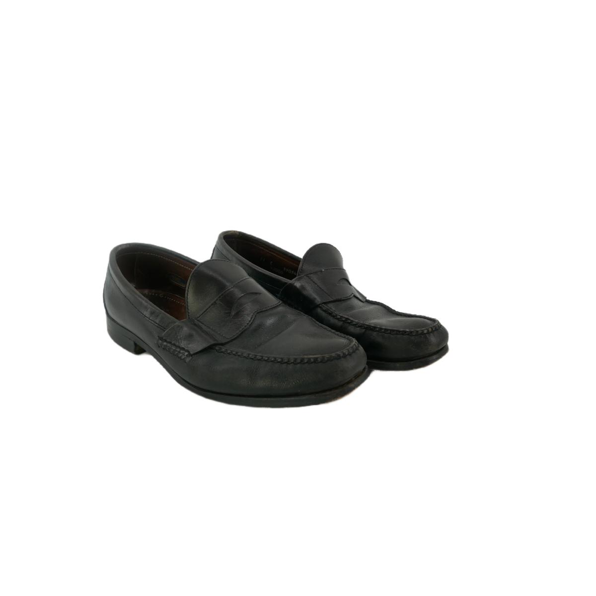 Two pairs of men's penny loafer style shoes in size US 11 Red-brown Allen Edmons penny loafer in size US 11, made in the USA. Black Allen Edmons Paxton penny loafer in size US 11. Pre-owned, may be scuffs and marks. All in good condition. (F25)