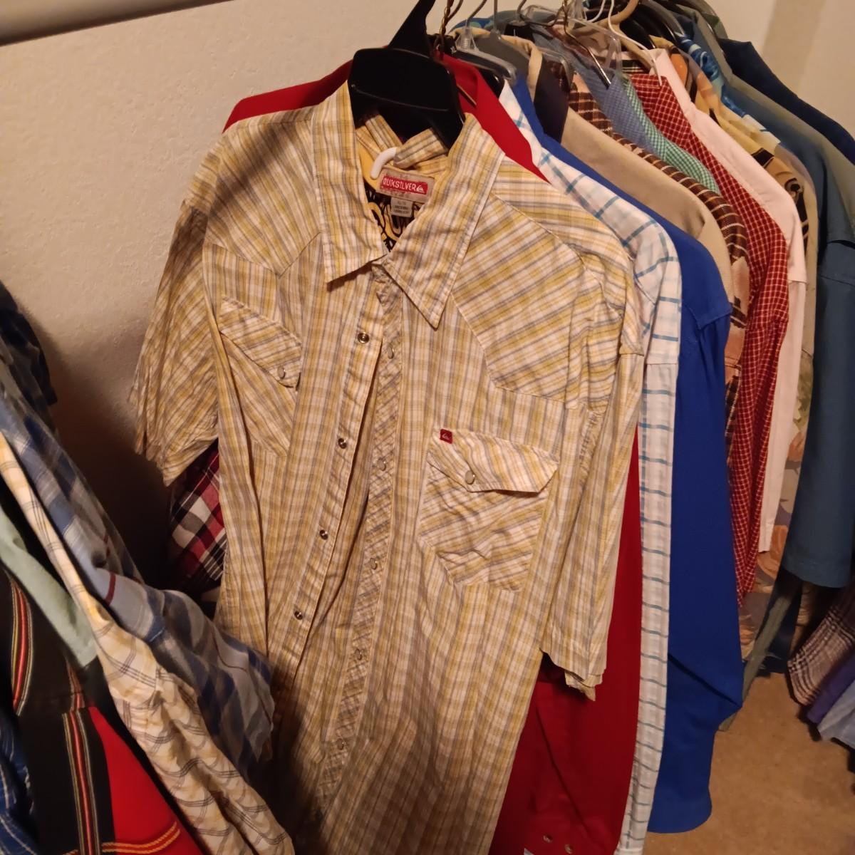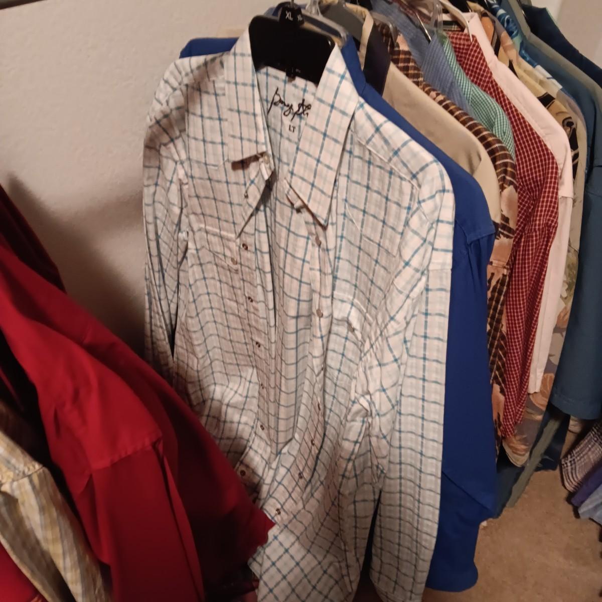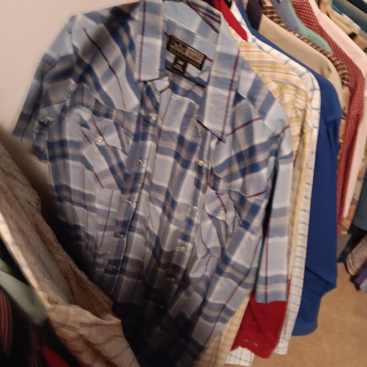 MEN'S SHORT AND LONG SLEEVE ROPER, GEORGE STRAIT, ETC WESTERN SHIRTS (LARGE)