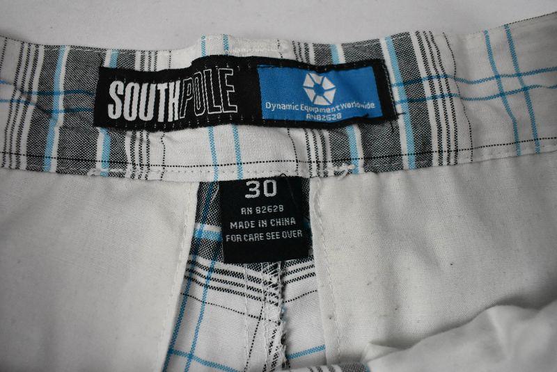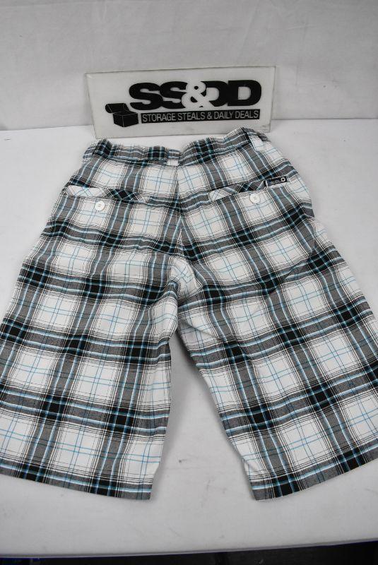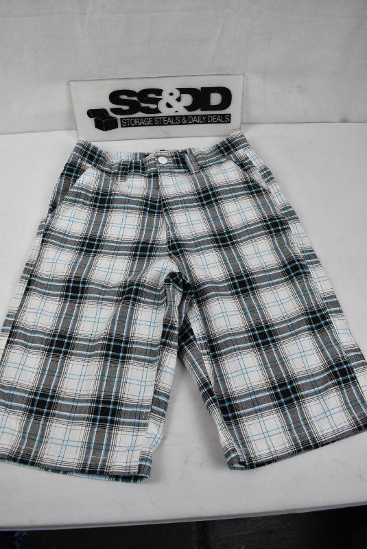 Men's Shorts by Southpole, White/Black/Turquoise Plaid, Size 30