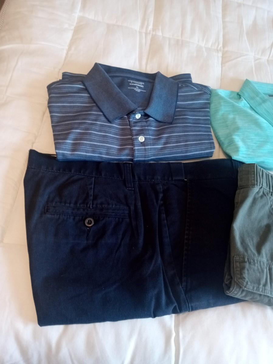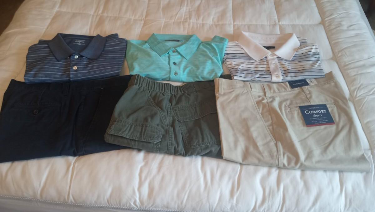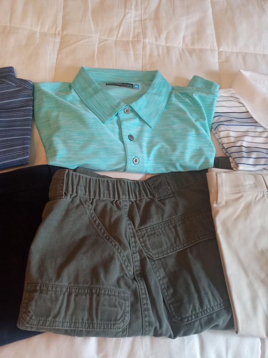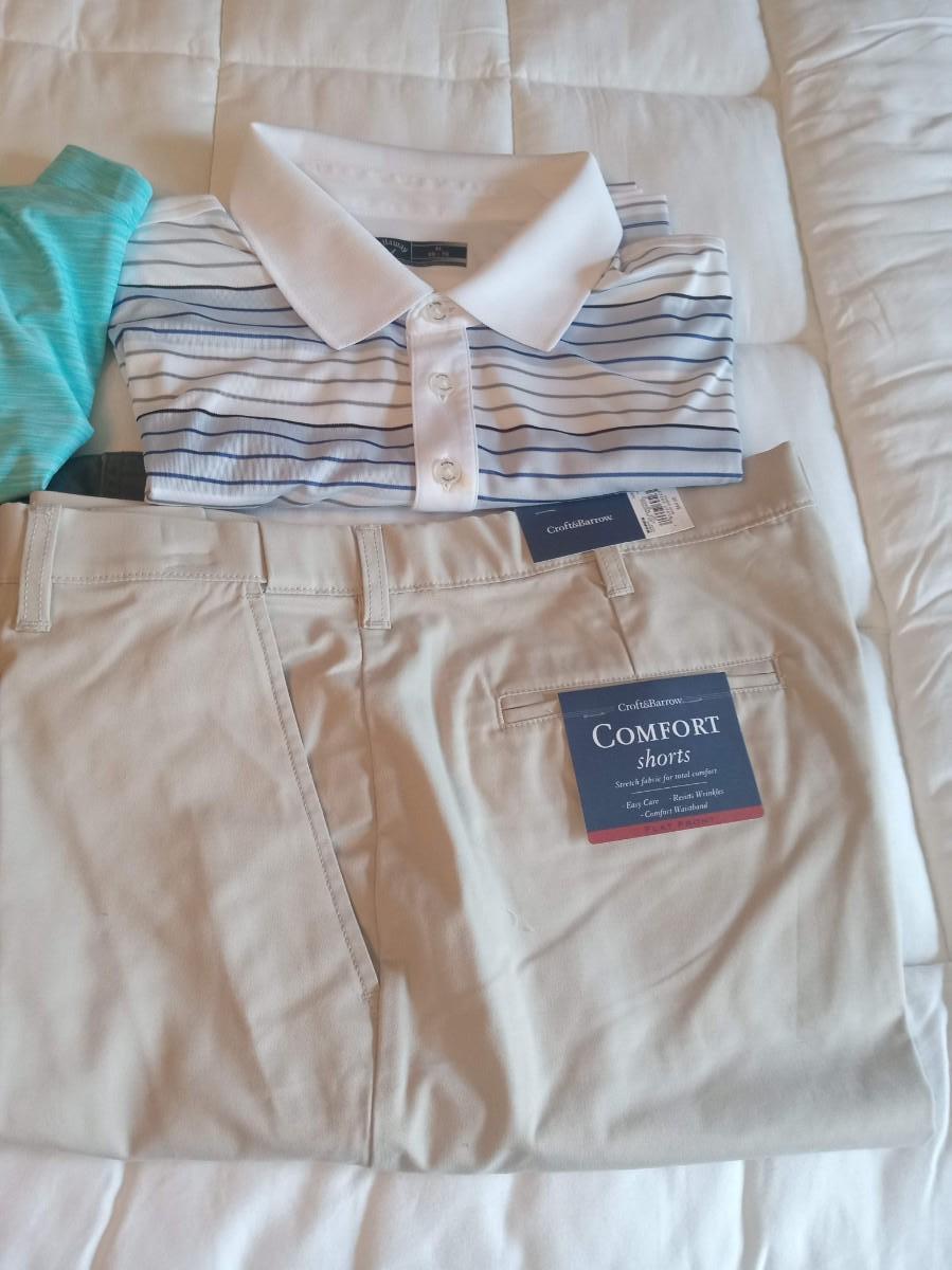 MEN'S SHORTS SIZE 38 AND GOLF SHIRTS XL