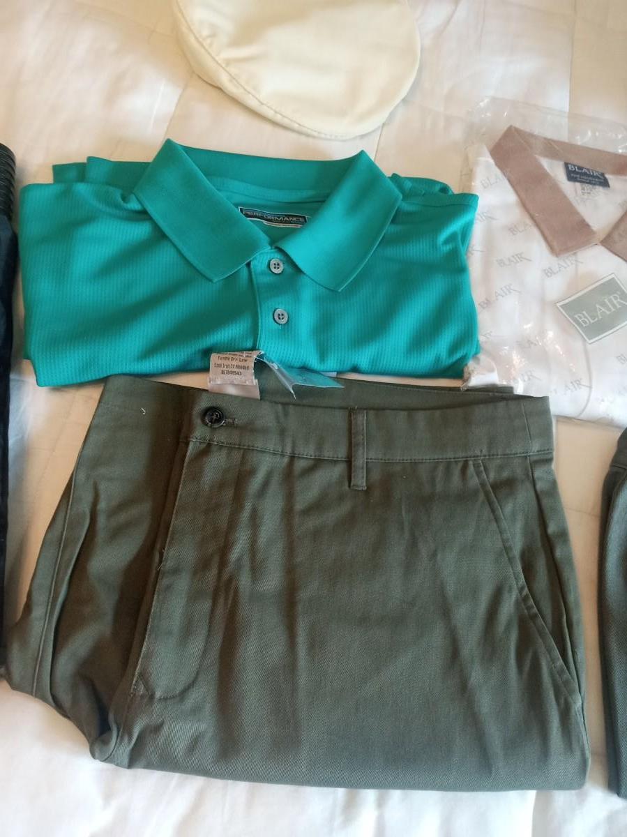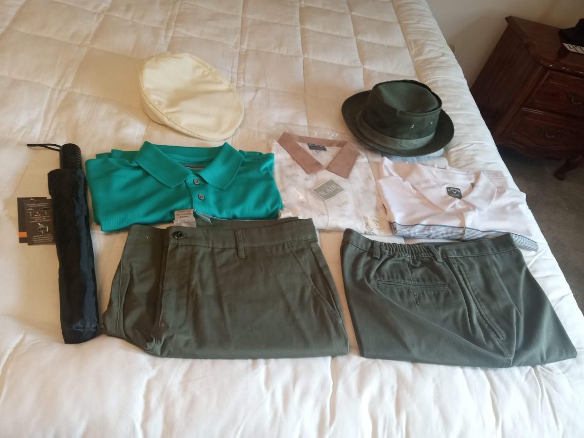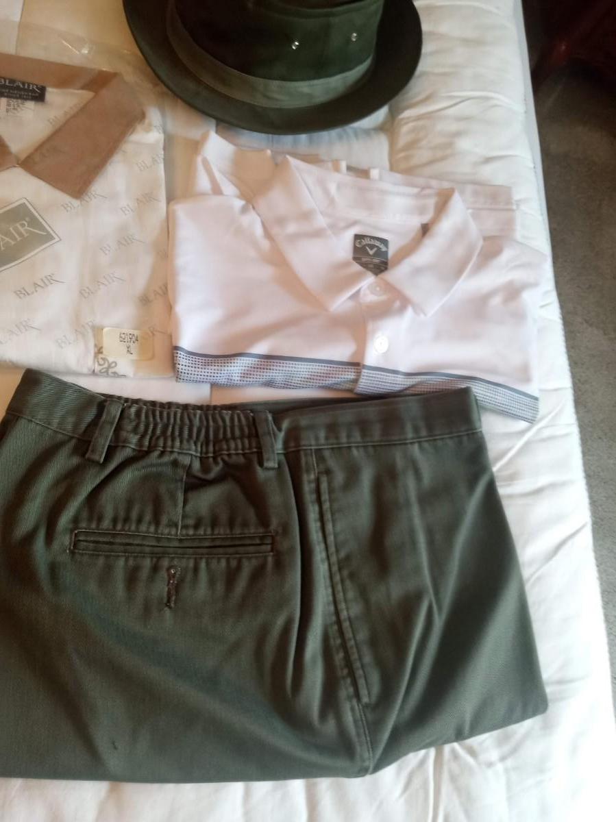 MEN'S SHORTS SIZE 38, GOLF SHIRTS XL AND HATS LARGE