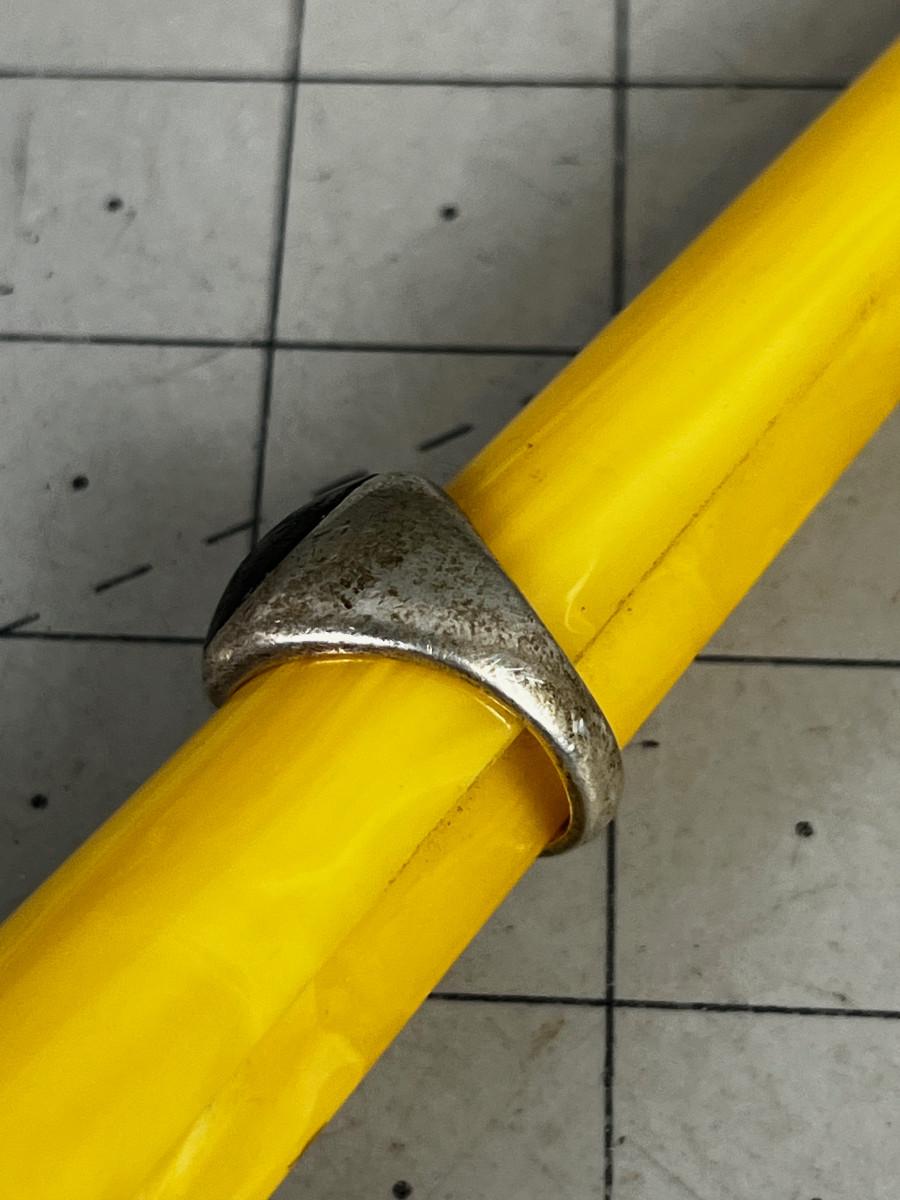 Size 10-1/2 Good Wearable Condition. Dome Style. Scratched, needs to be Buffed and Polished. Heavy. Real Deal. 14.9 Grams