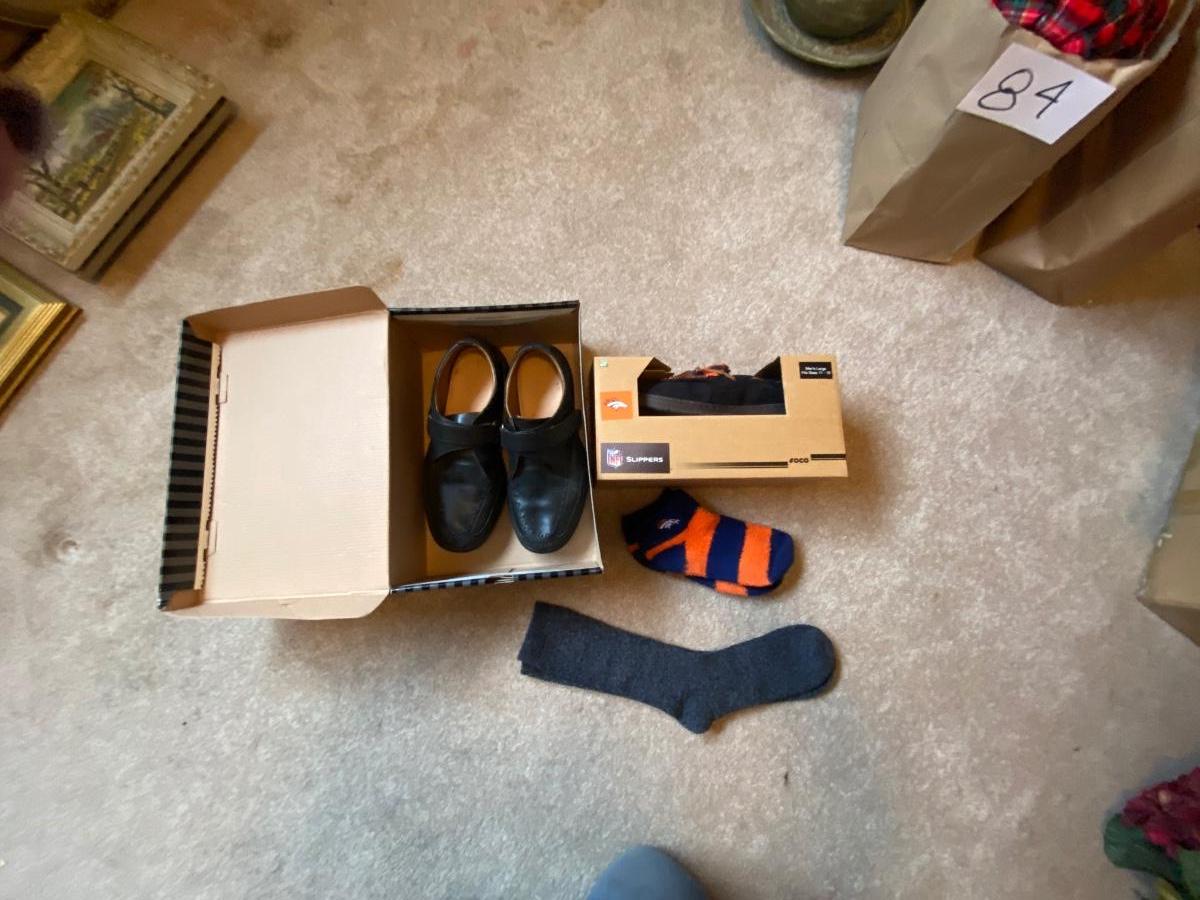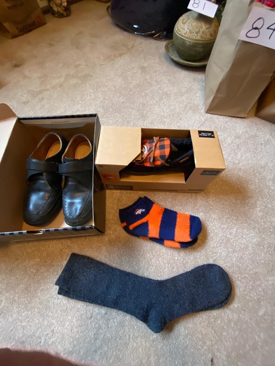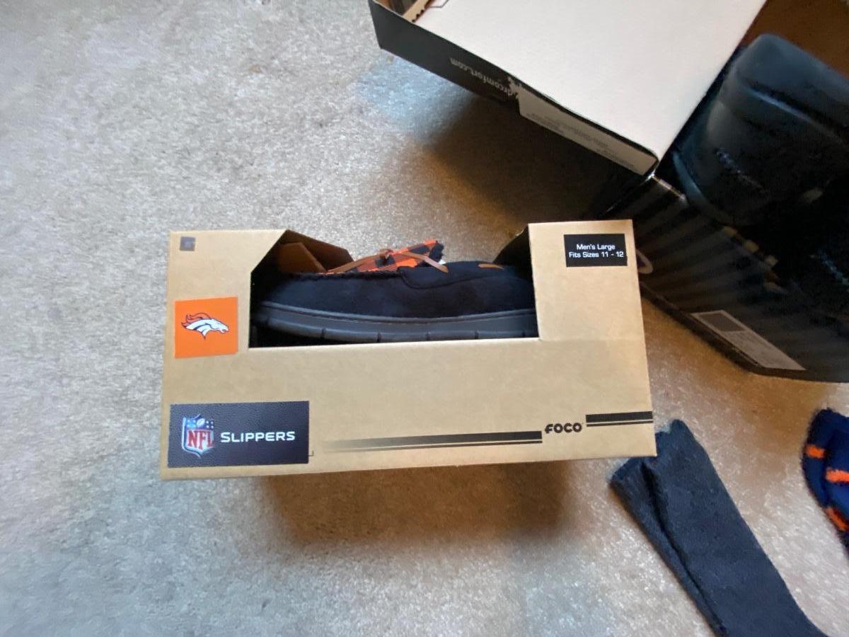 MENS SIZE 11 DR. COMFORT SHOES AND BRONCOS DEAR FOAM SLIPPERS