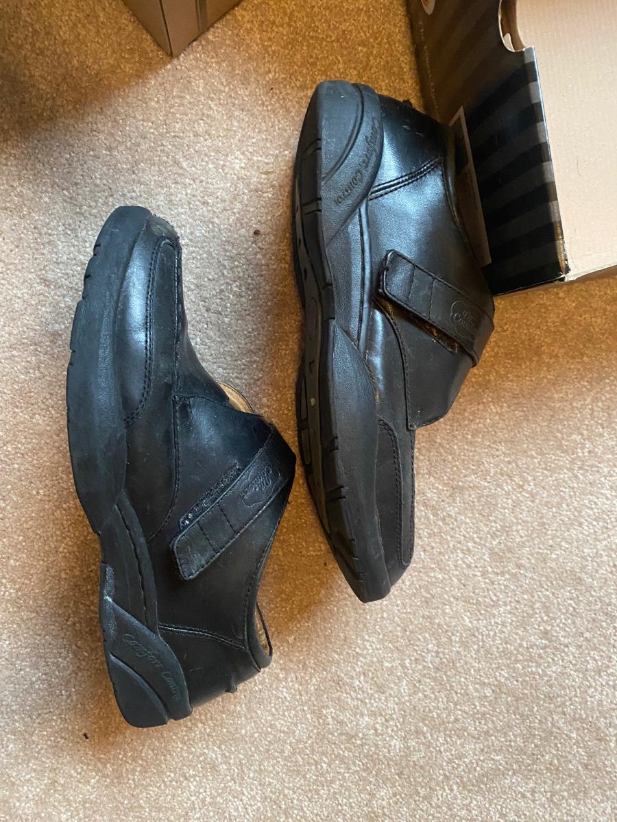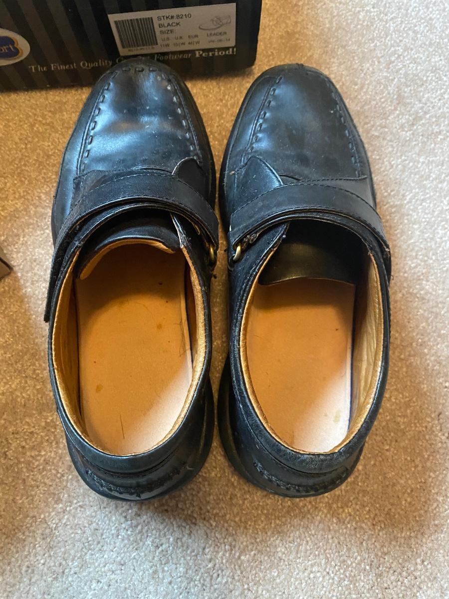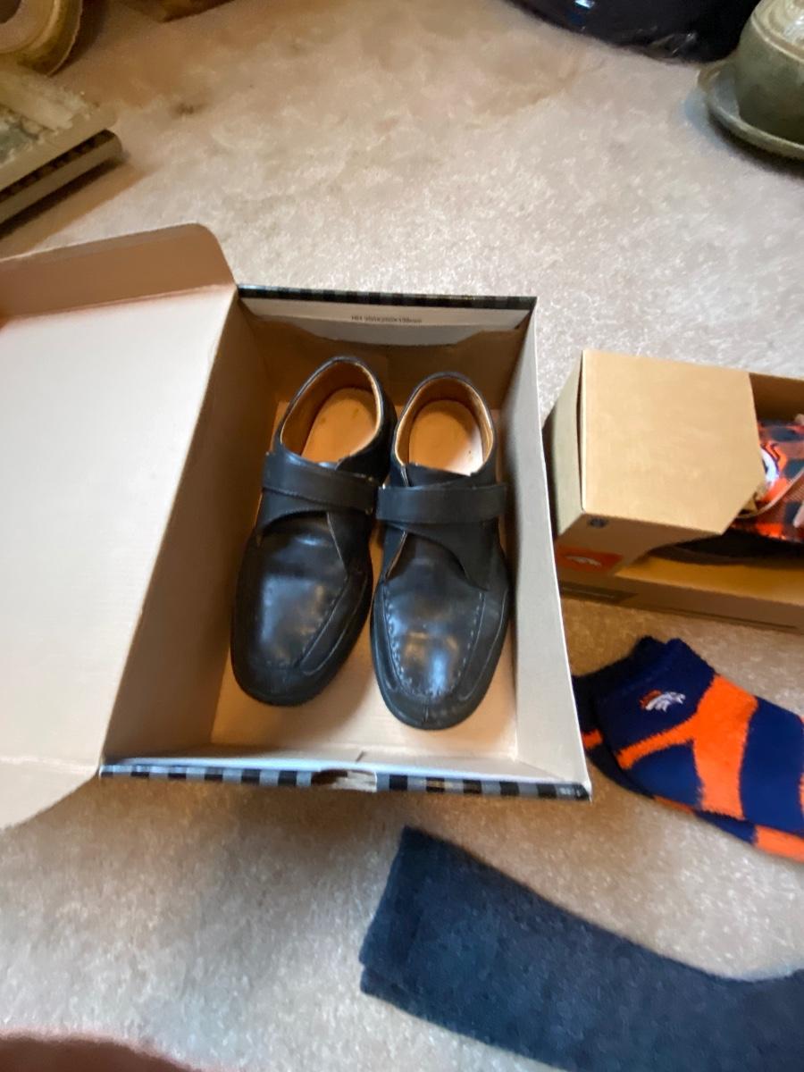 MENS SIZE 11 DR. COMFORT SHOES AND BRONCOS DEAR FOAM SLIPPERS