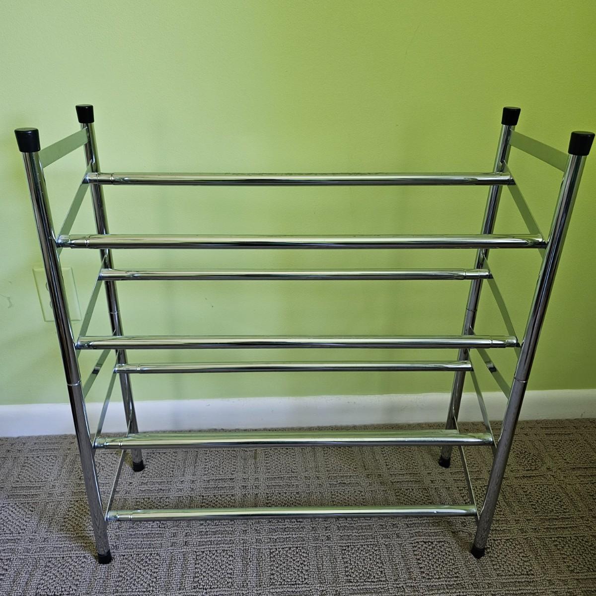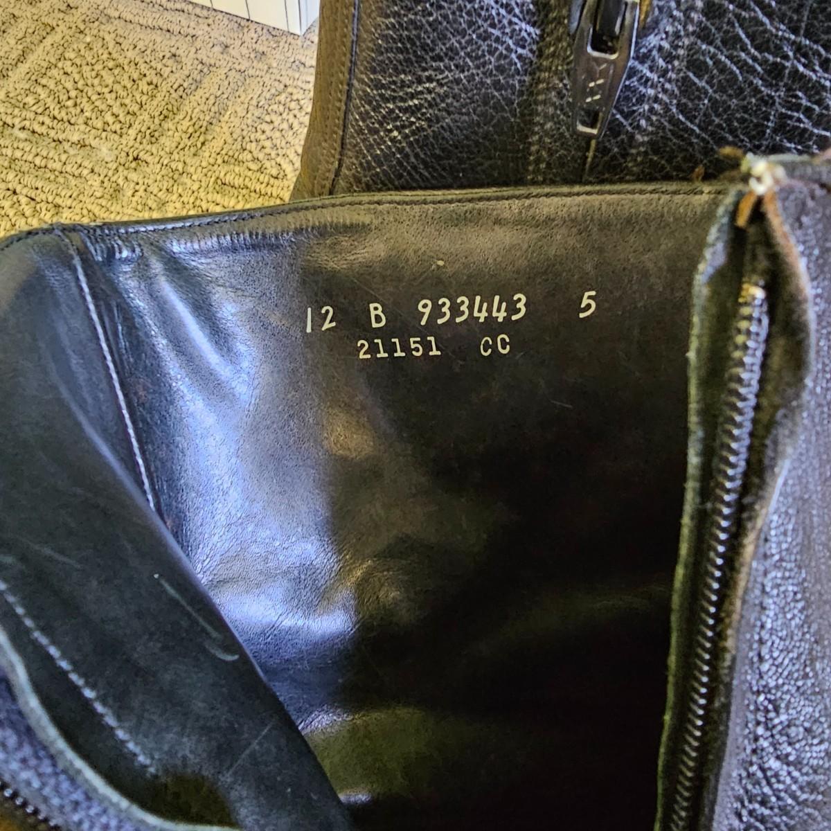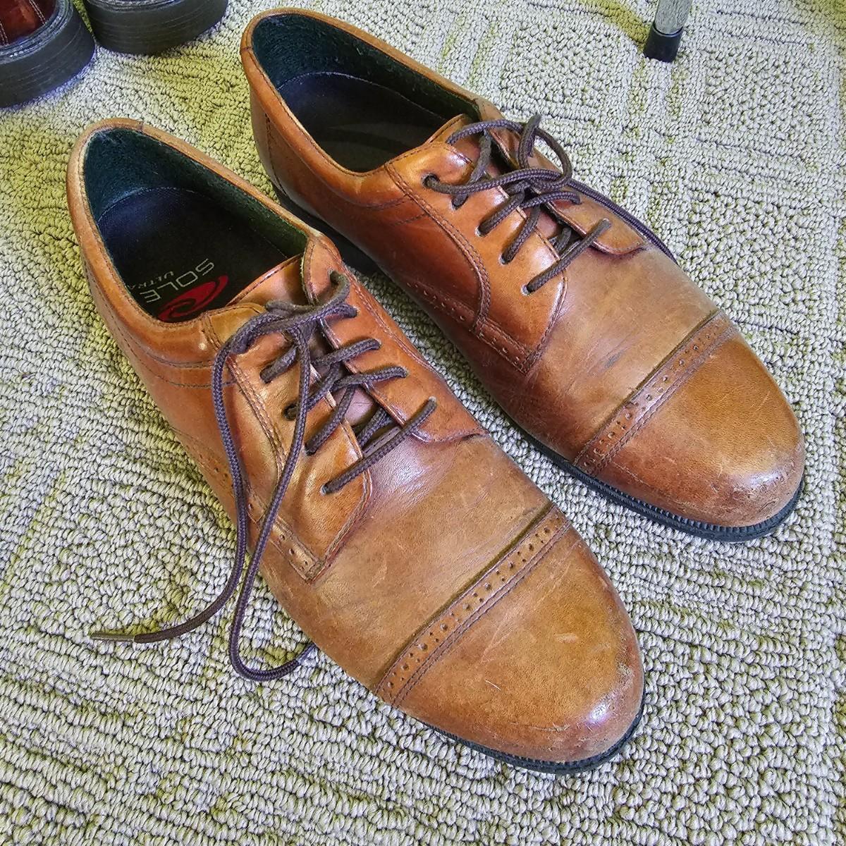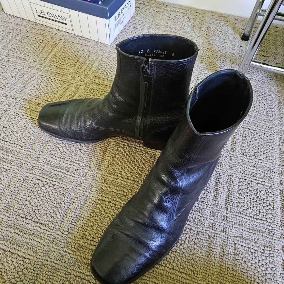 Seven pair of mens size 12 shoes and sandals. Oxfords, wingtips, boots, black and brown/tan. Includes one steel shoe rack, 25" x 9" x 27"H, and a vintage shoe shine measures 12" x 8" x 10". Box has accessories included, but we cannot verify the contents. See photos for details. Shipping available.