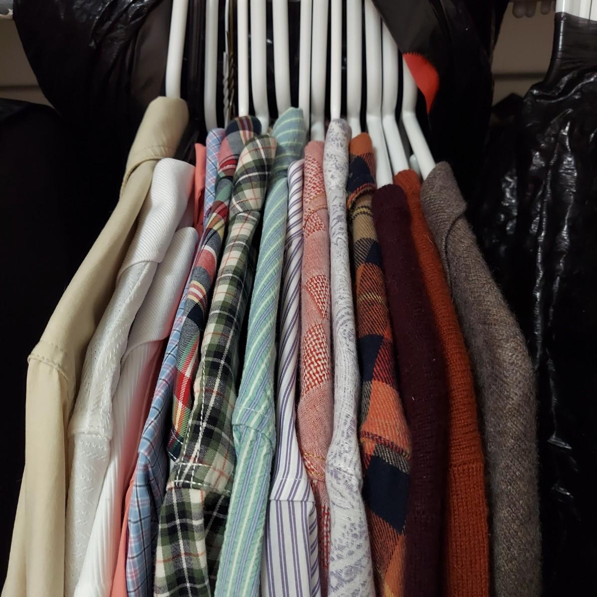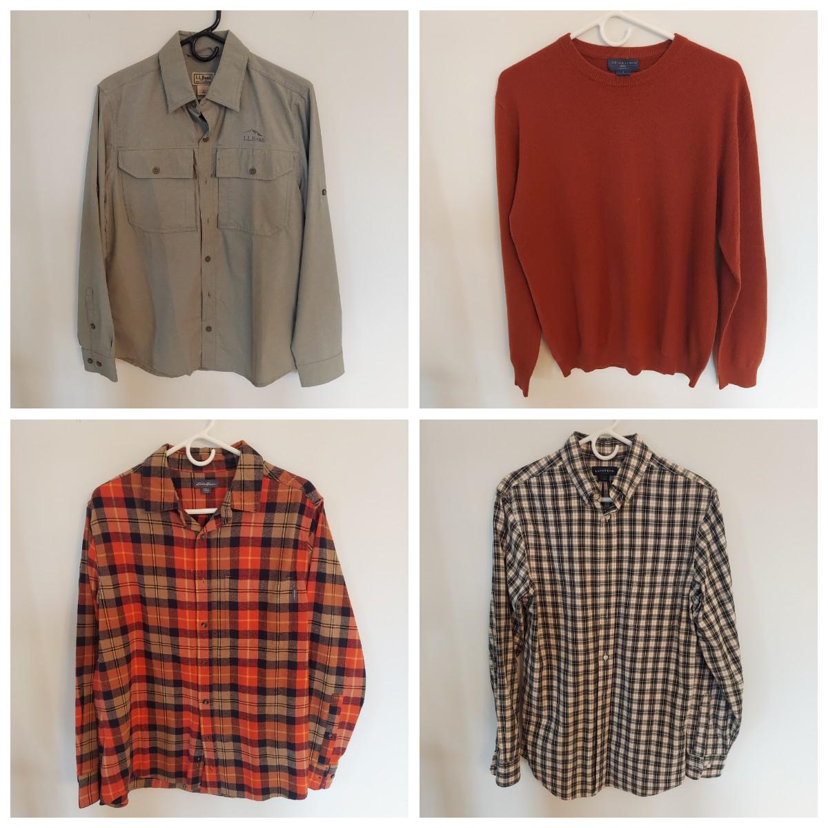 Several men's shirts in size small. Brands include L.L. Bean, Eddie Bauer, Lands End and more. Not all items are shown individually. Please schedule a preview appointment if you are interested in seeing each piece. See photos for details. Shipping available