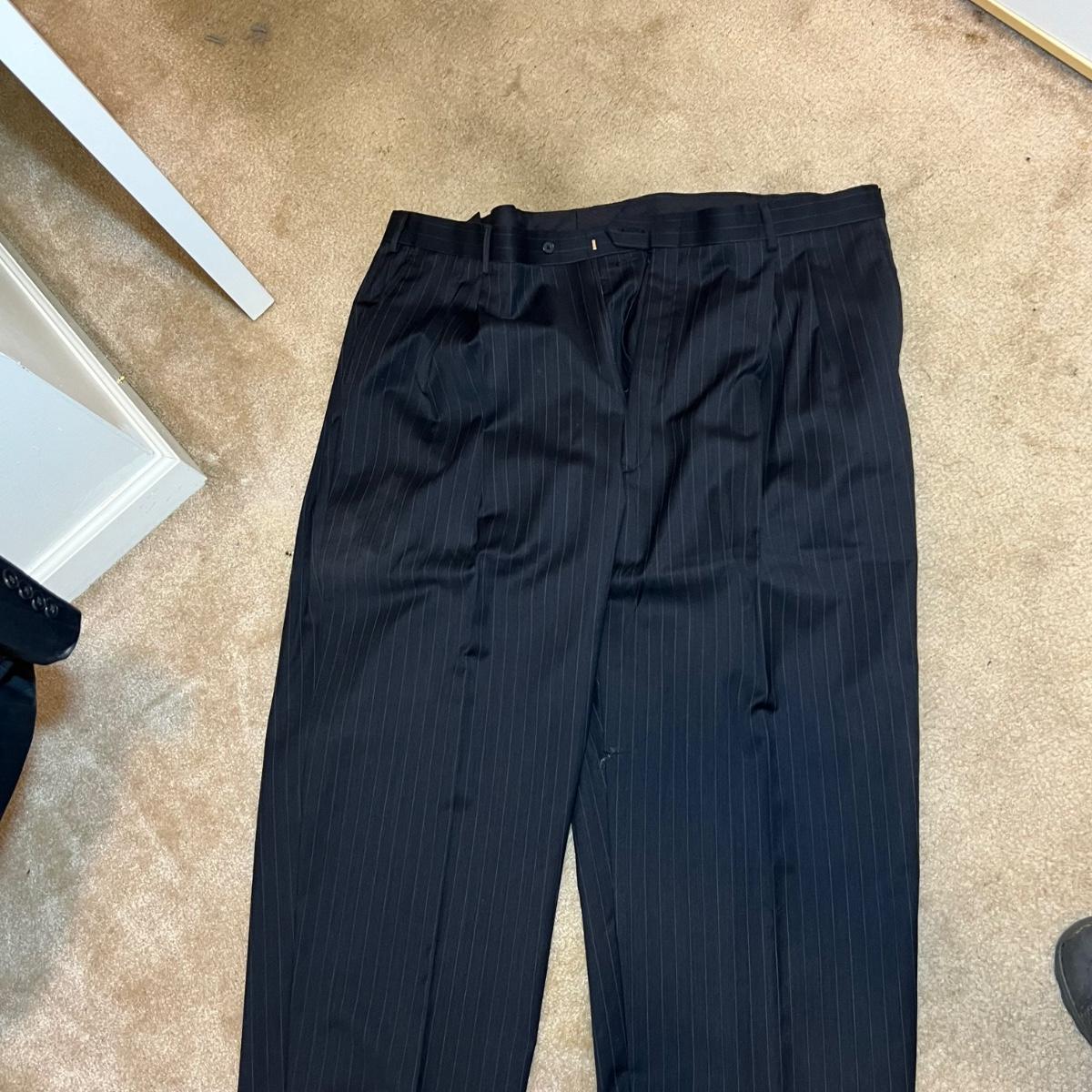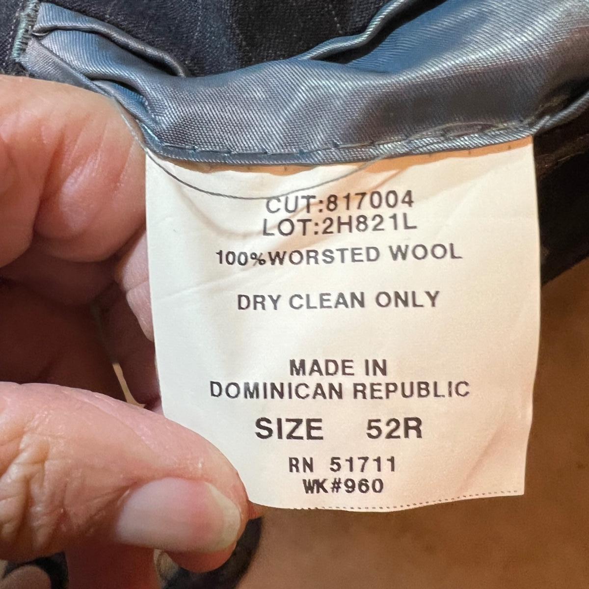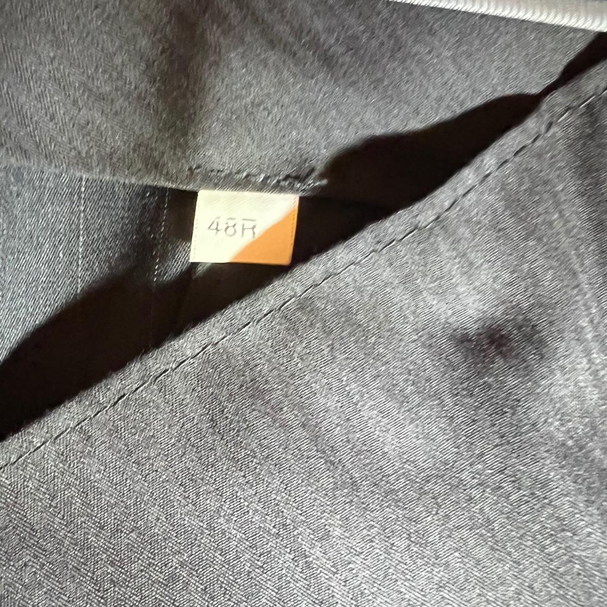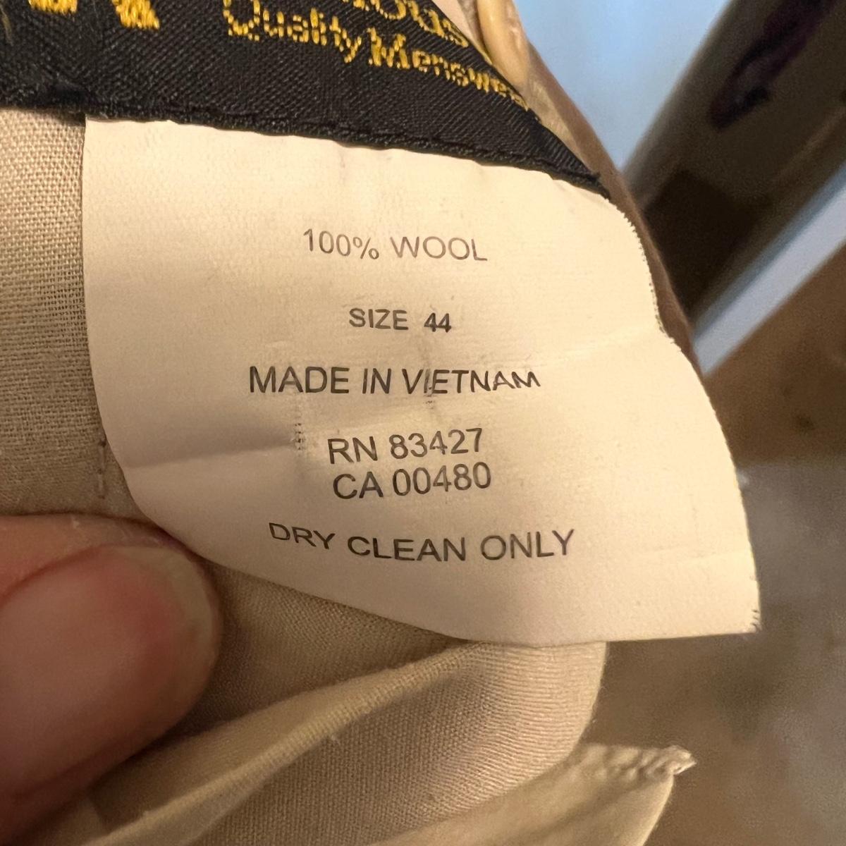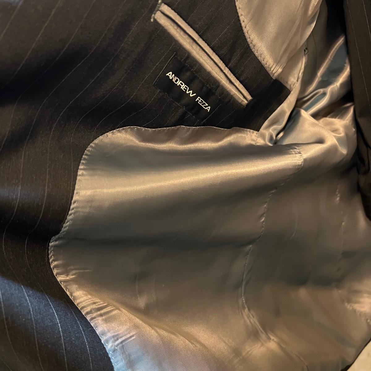 Four suit jackets, seven pairs of pants plus a Roberto Villini white dress shirt. See images for sizes and more information. The brown Andrew Fezza jacket measures 26” chest x 34” long.