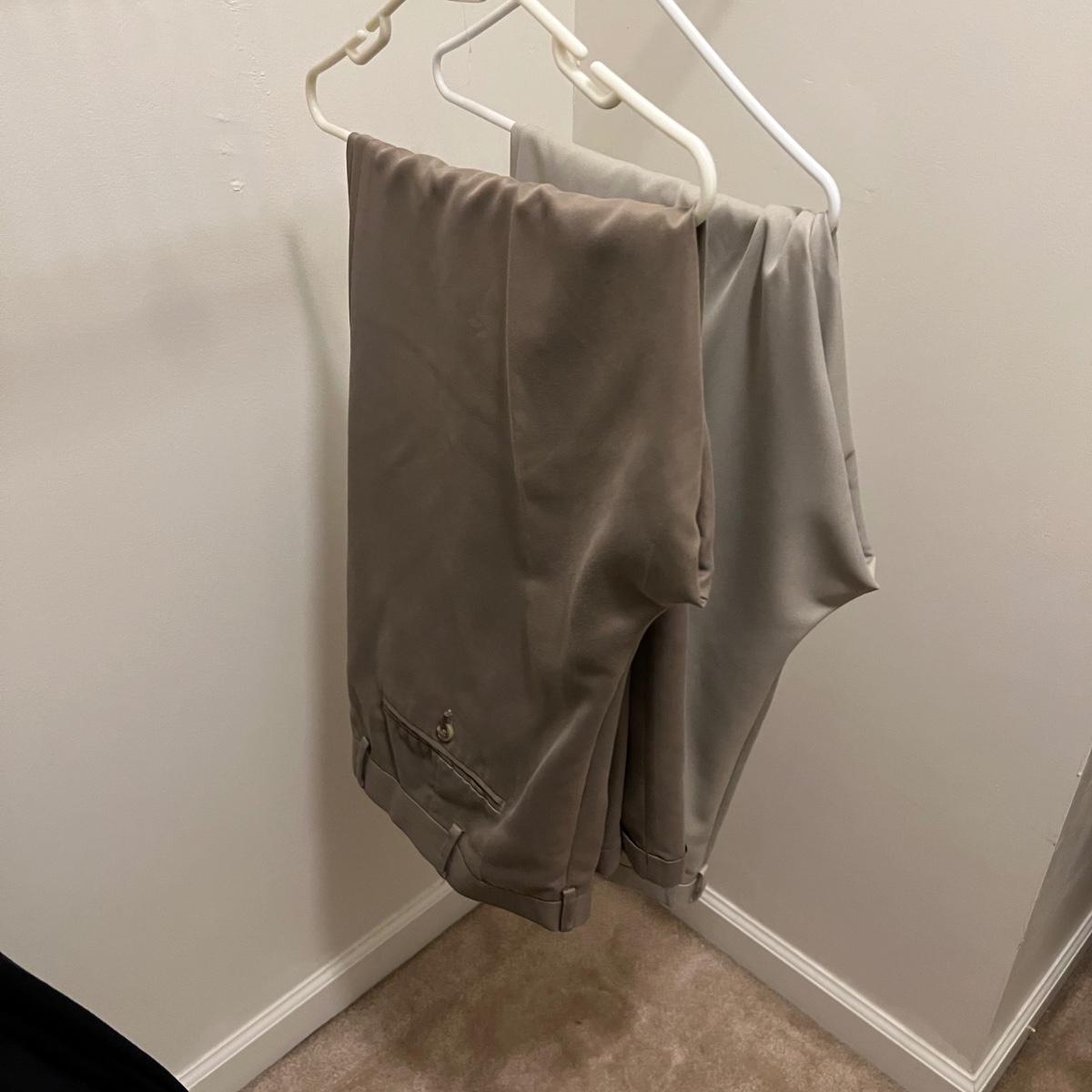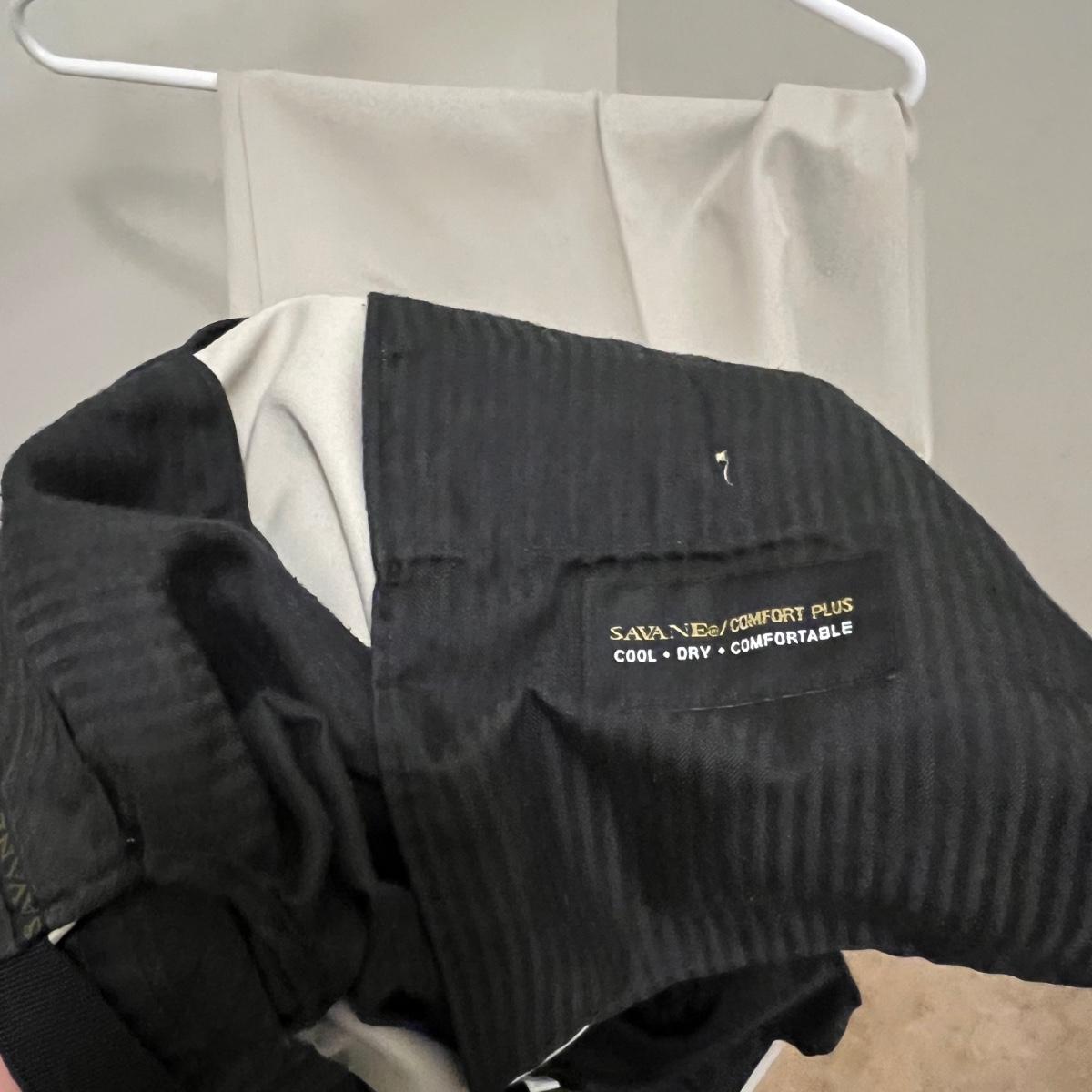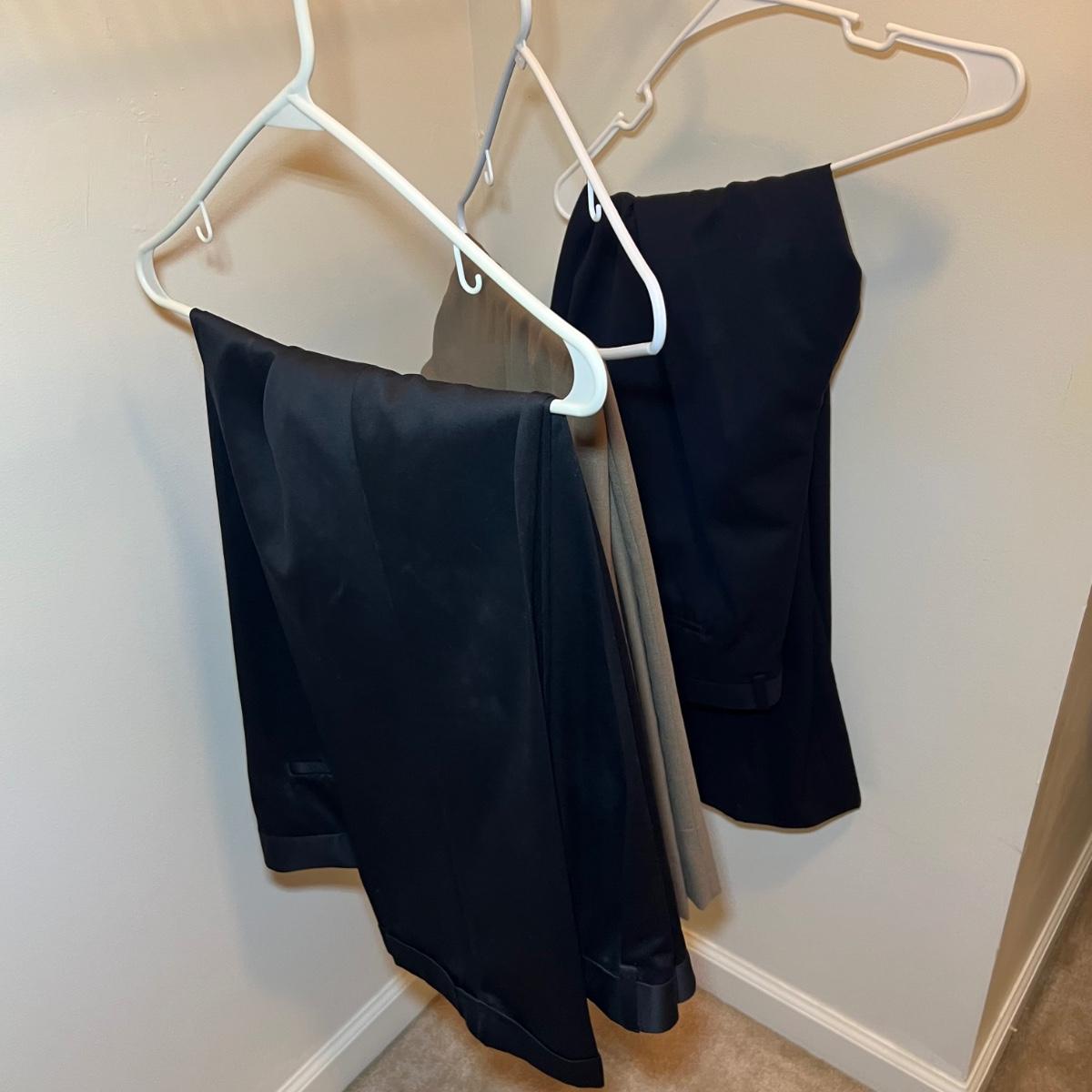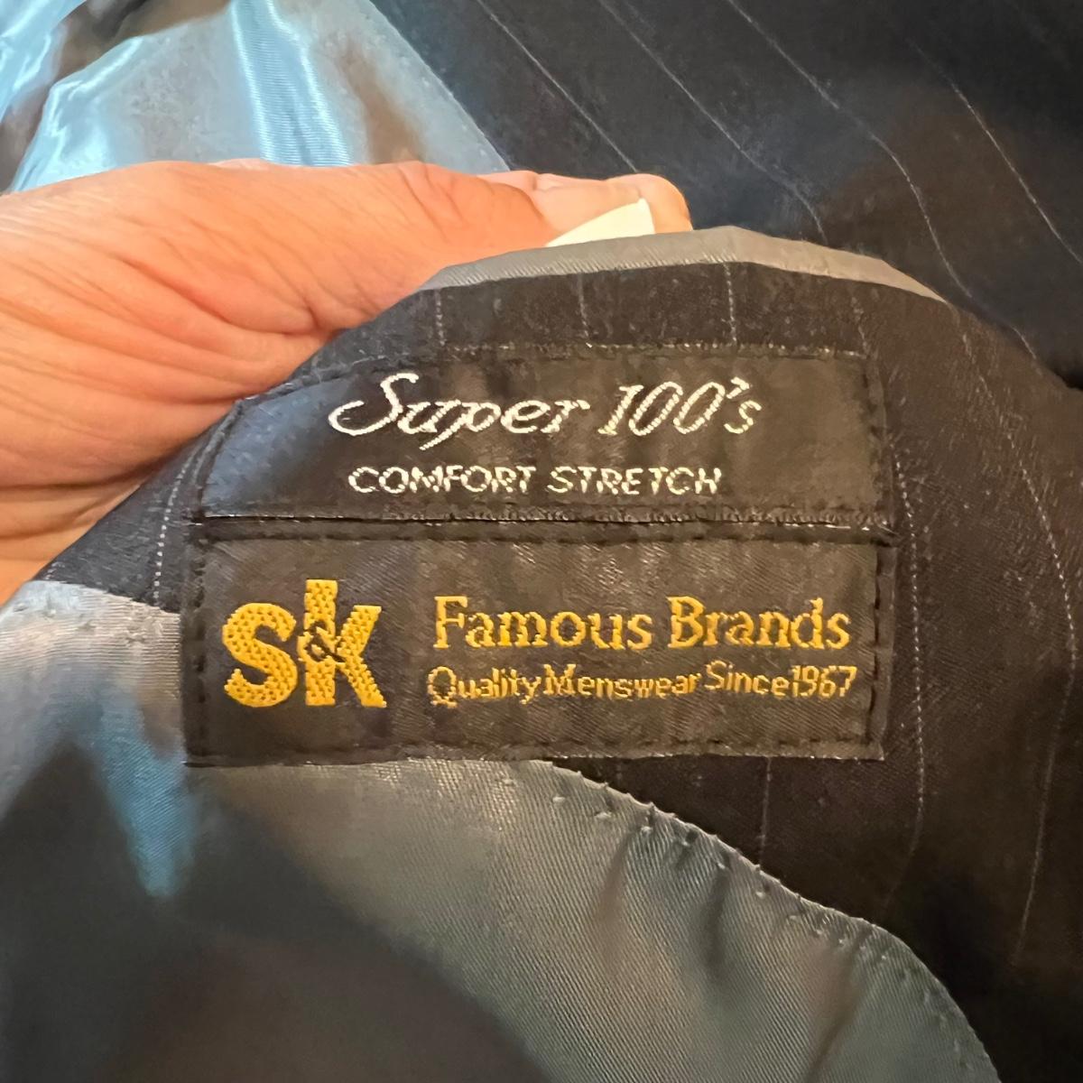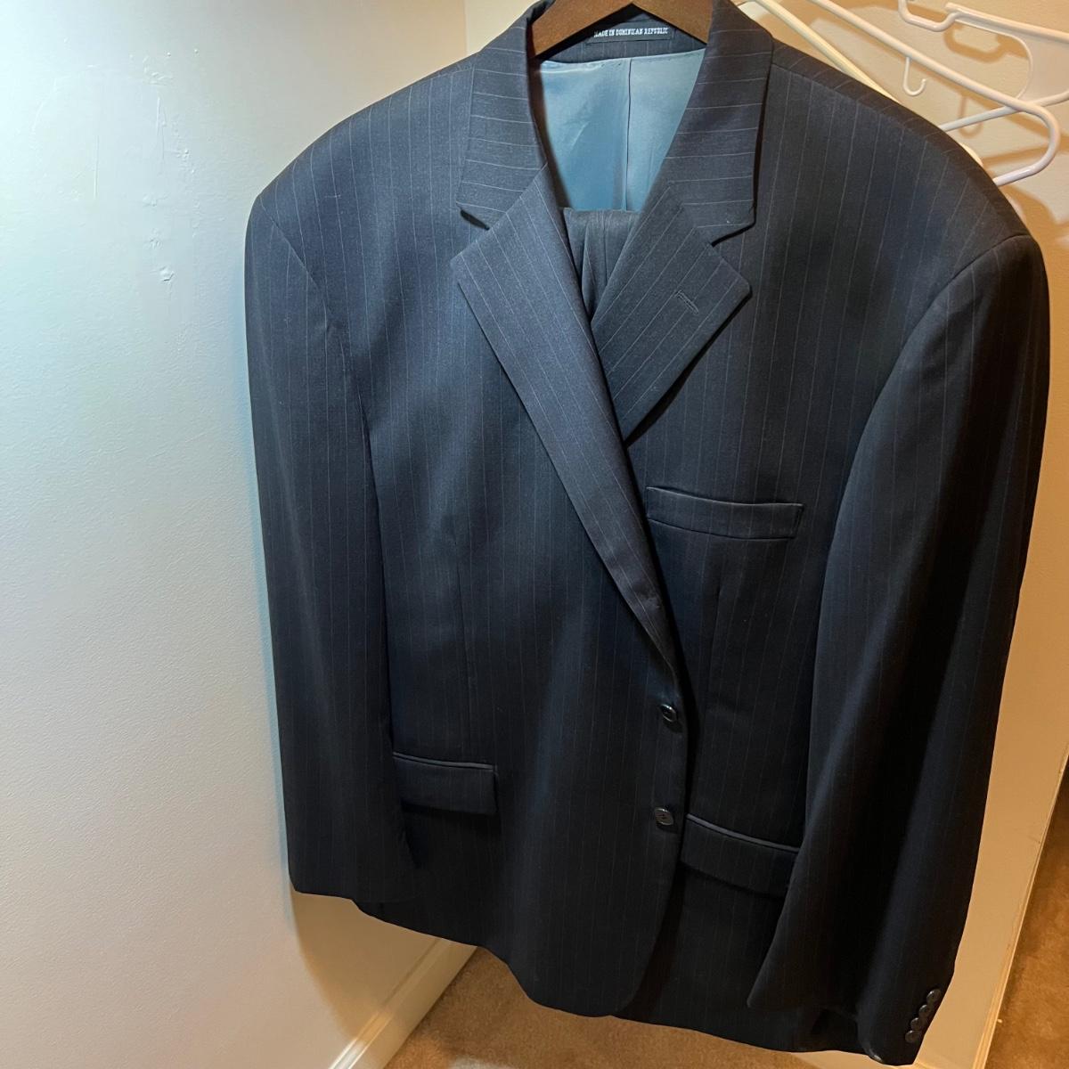 Four suit jackets, seven pairs of pants plus a Roberto Villini white dress shirt. See images for sizes and more information. The brown Andrew Fezza jacket measures 26” chest x 34” long.