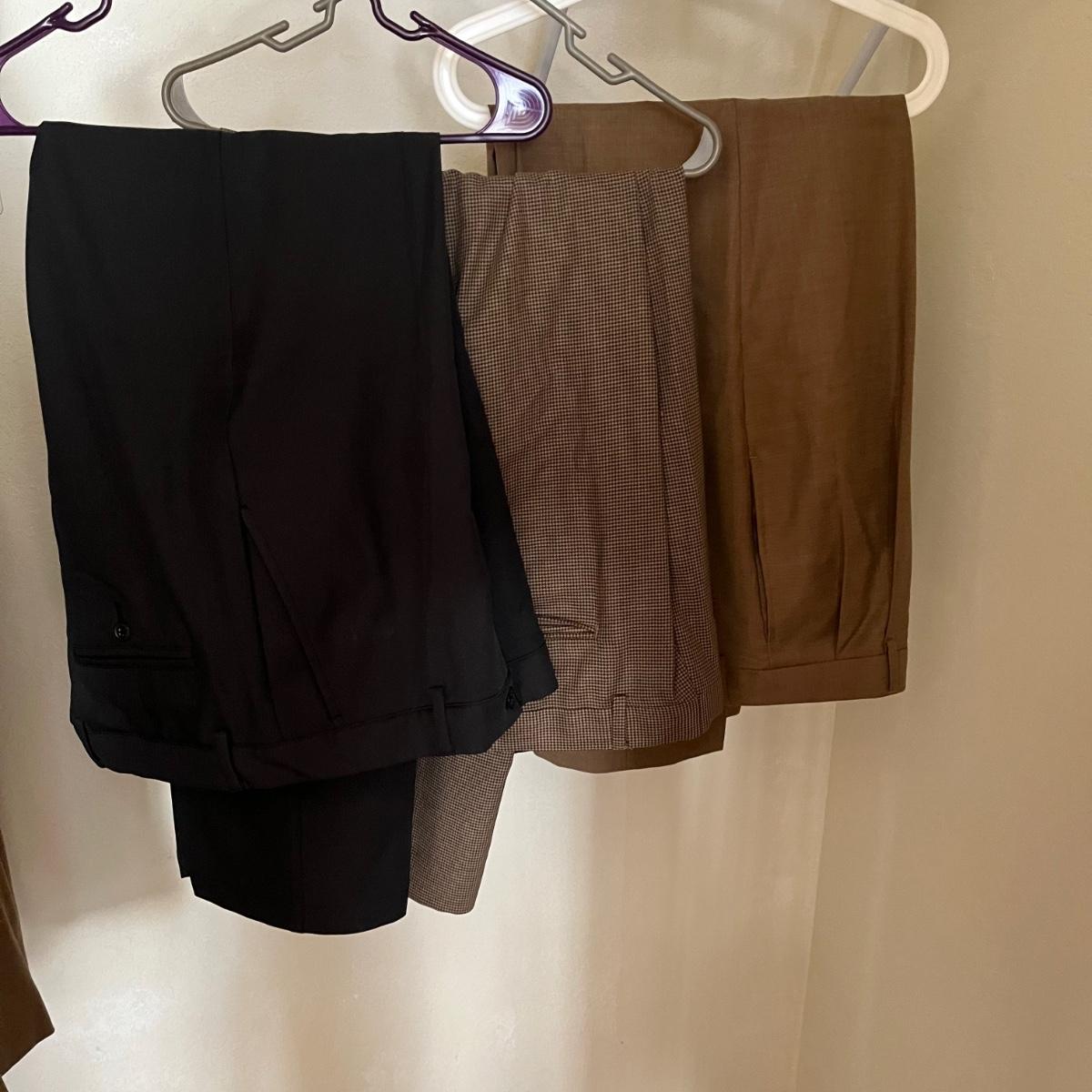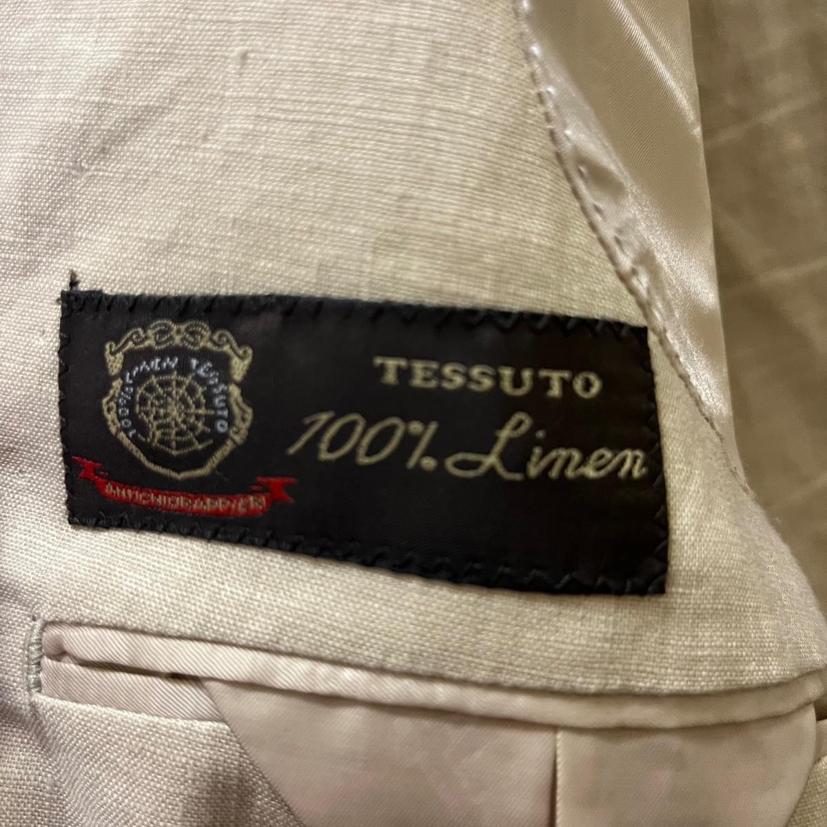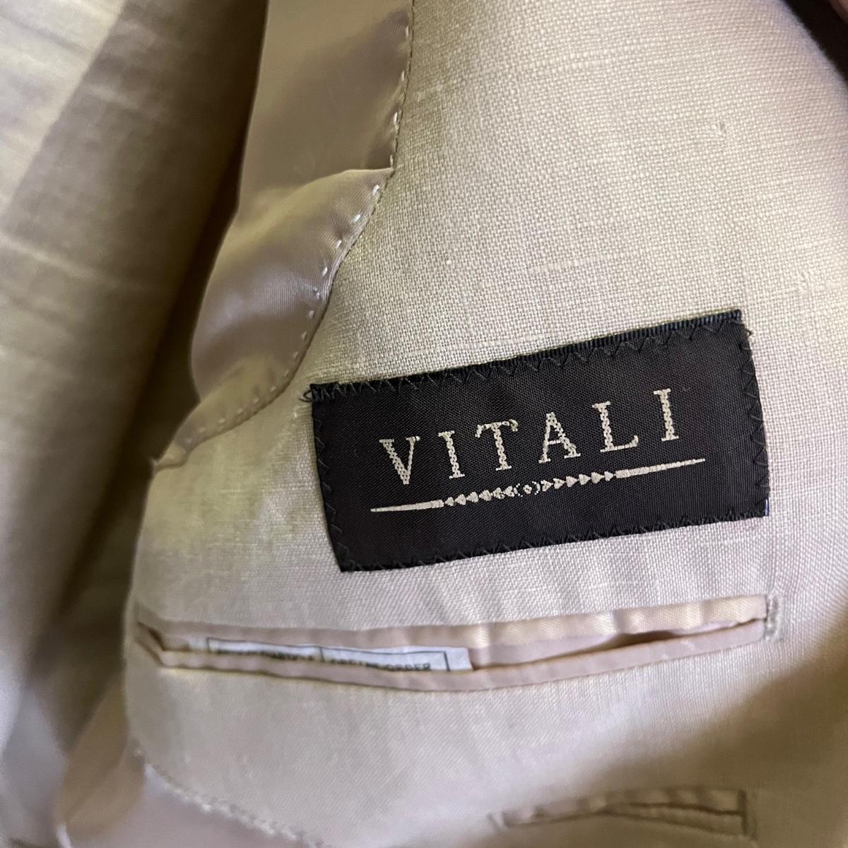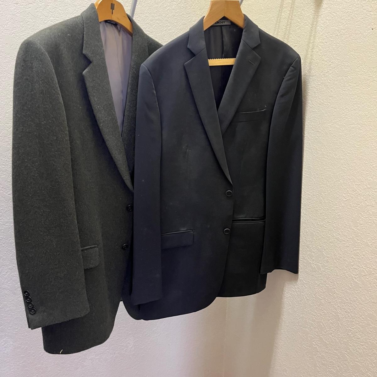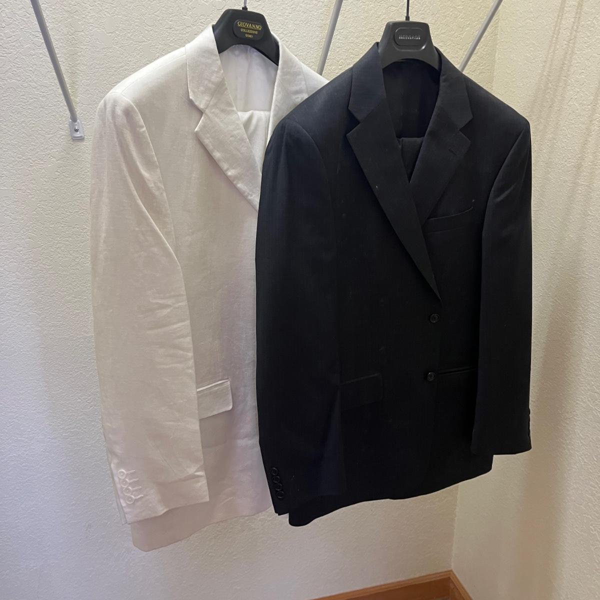 Lot contains a selection of men’s suits and coats including Armani tuxedo, Jos A Banks, Giovanni linen suit, Hugo Boss suit, Vitali Linen suit, Pierre Cardin and more. Most suits appear to be size 43-44. Suits have been in a non climate controlled area and could use a cleaning.