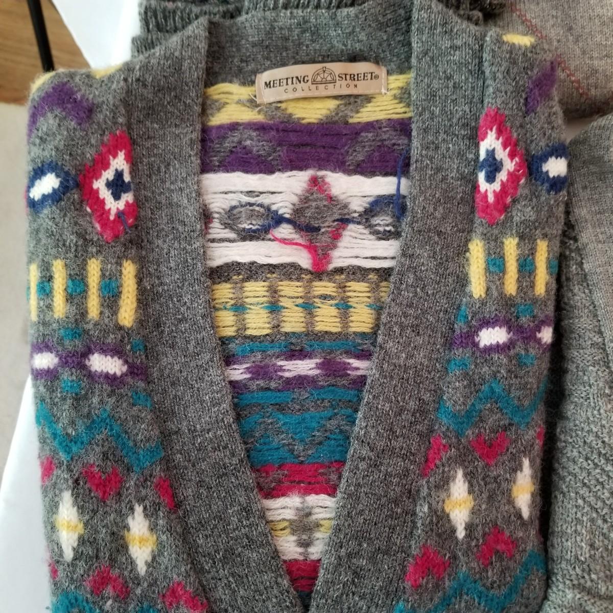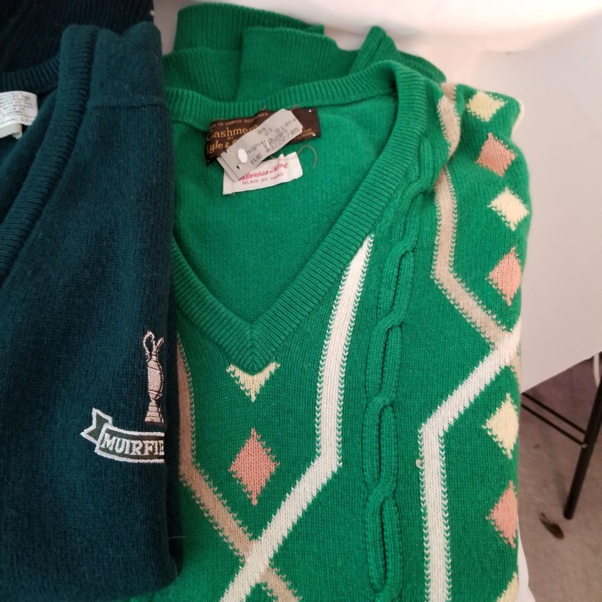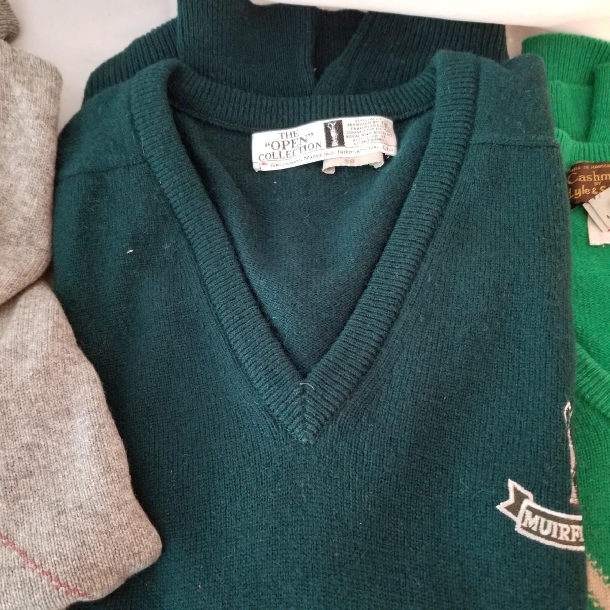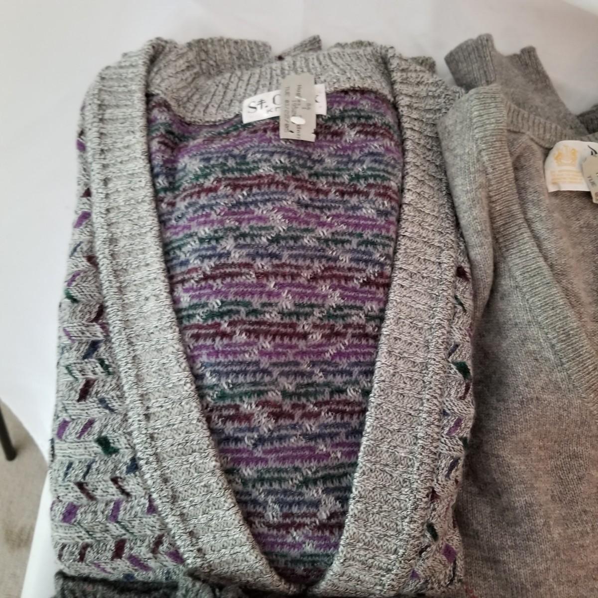 Six sweaters and one sweater vest. Various brands (including Pendleton) and colors. Knits and wool. Size large. See photos for detail. Shipping available.