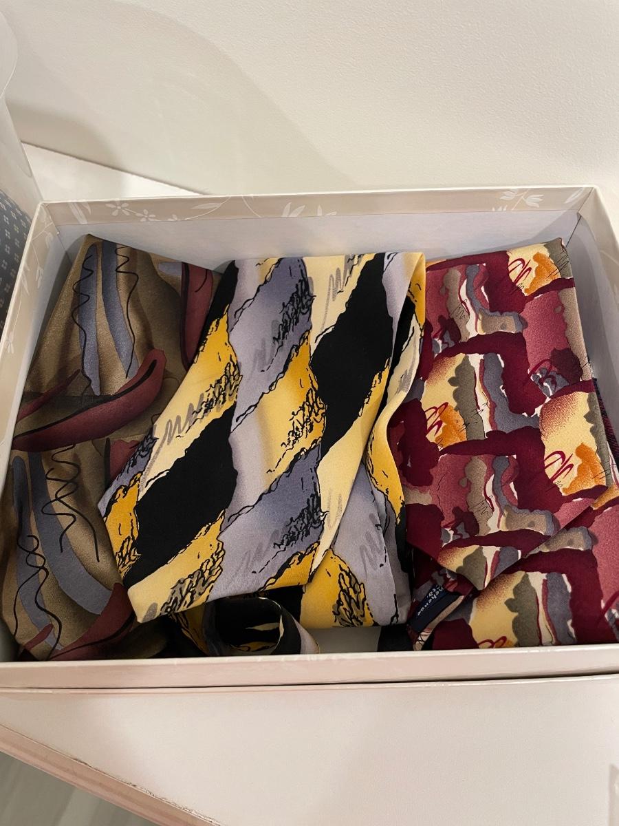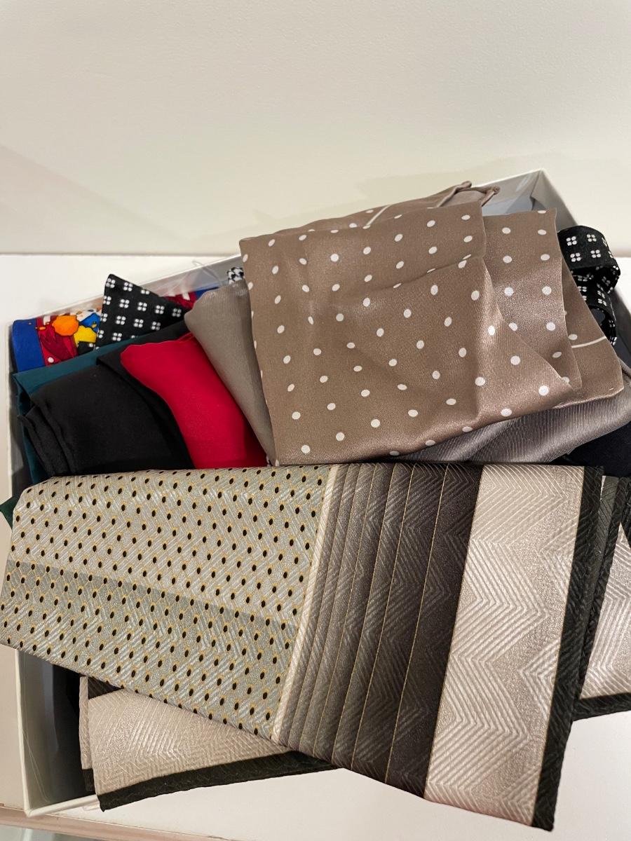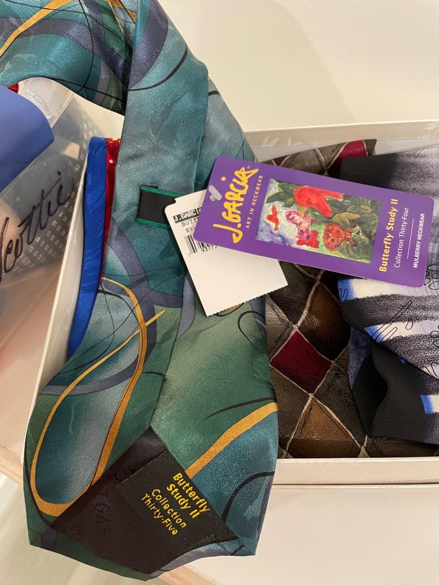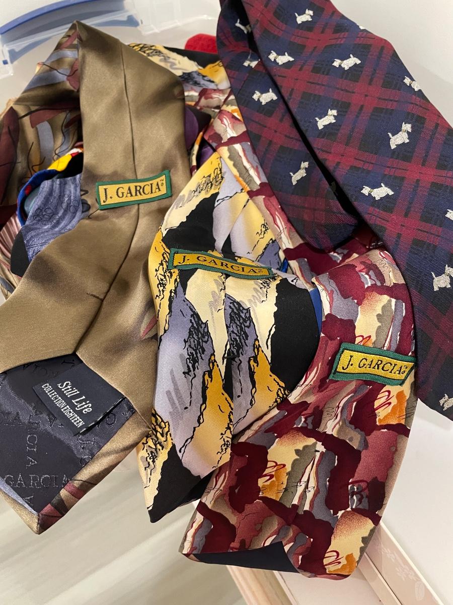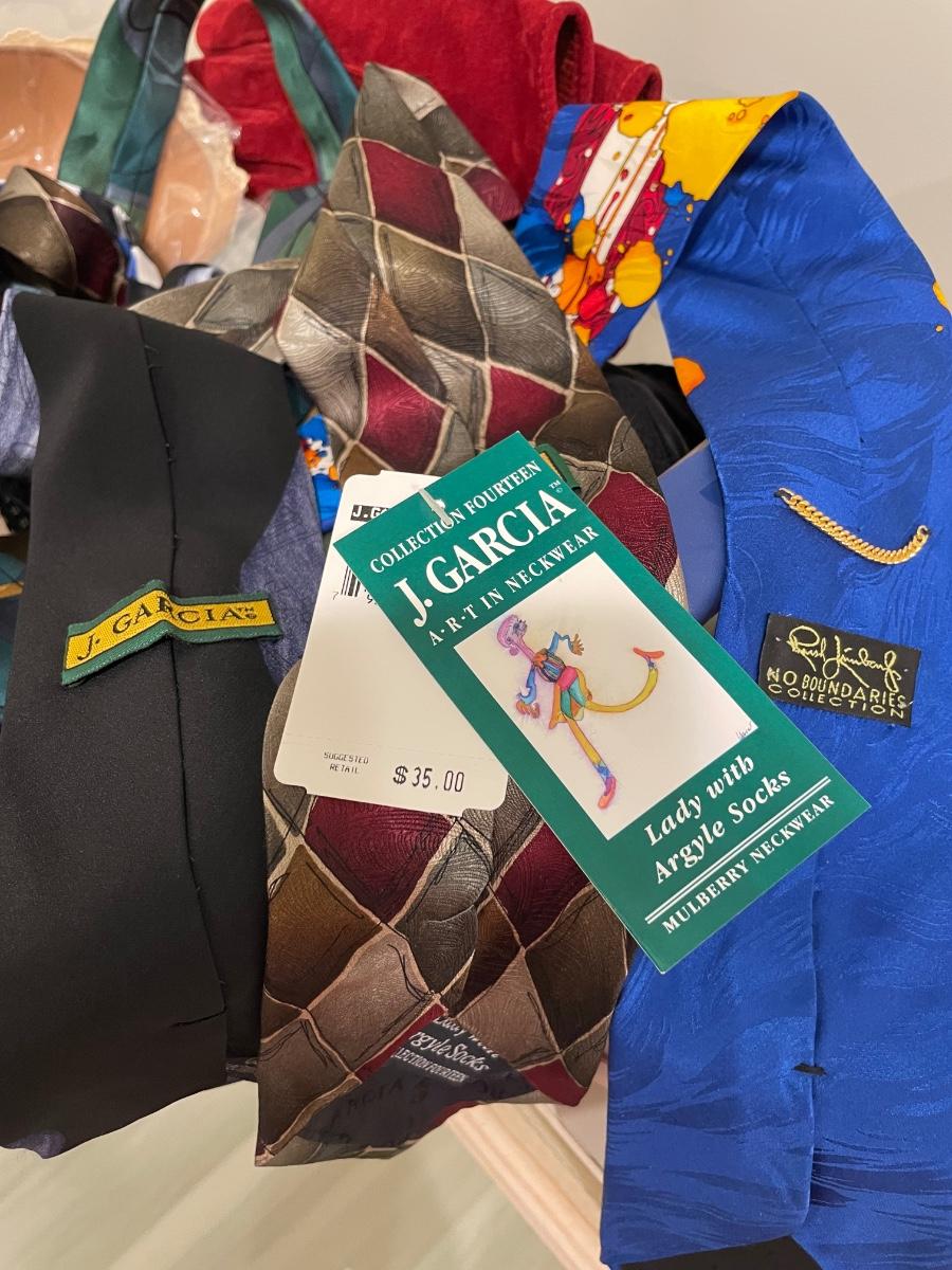 Several J Garcia ties, bow tie, some NWT. Lots of pocket scarves, some silk.