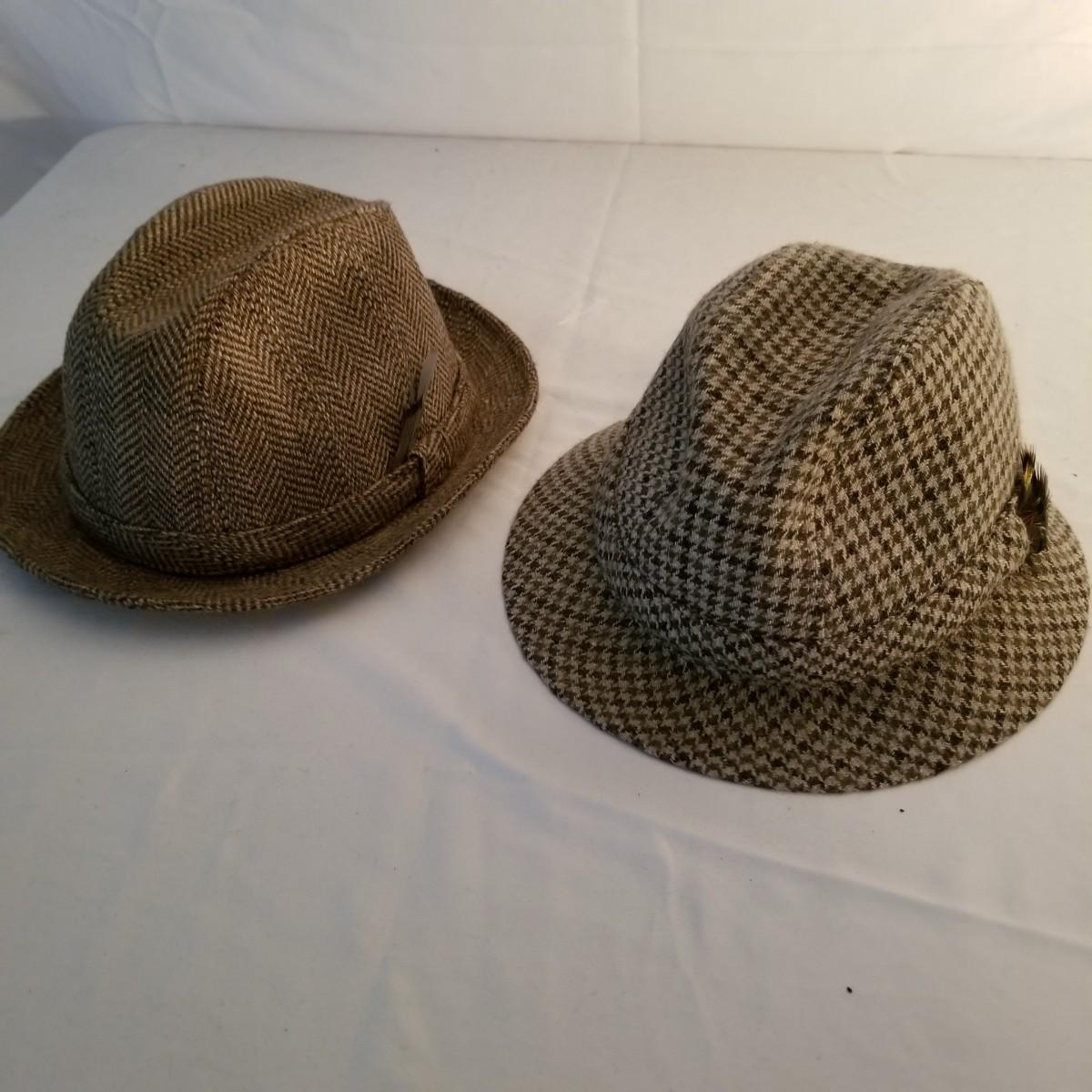 A pair of tweed hats, size extra large. One Stetson and one unmarked. Hats are in good condition. Shipping available.