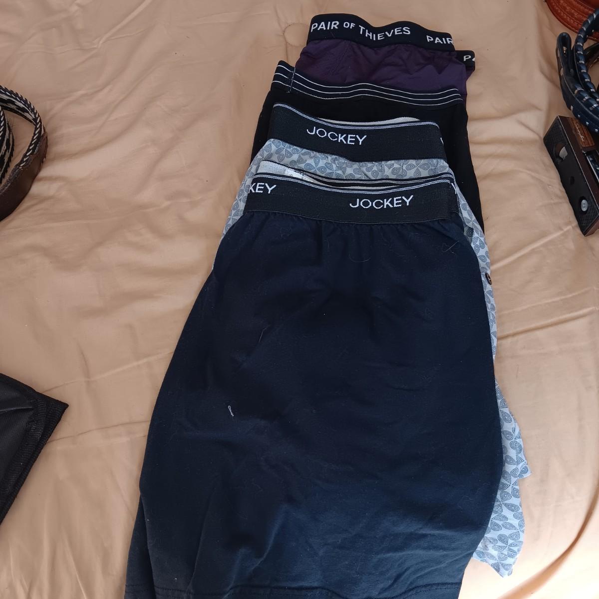 MEN'S UNDERWEAR, 3 BELTS AND SHOULDER PACK