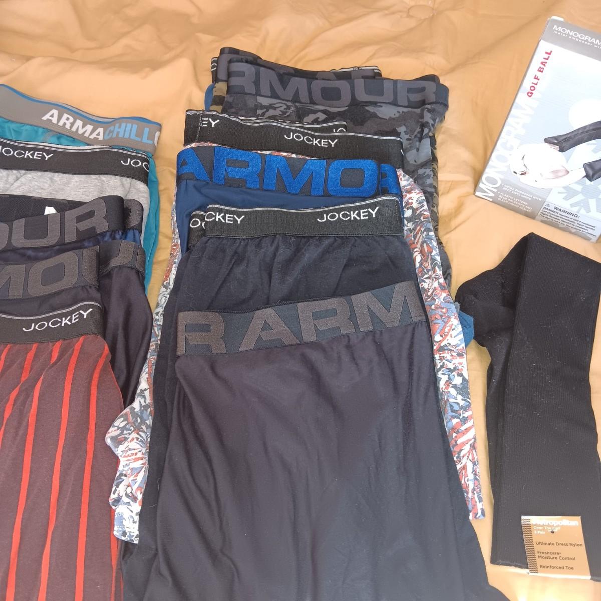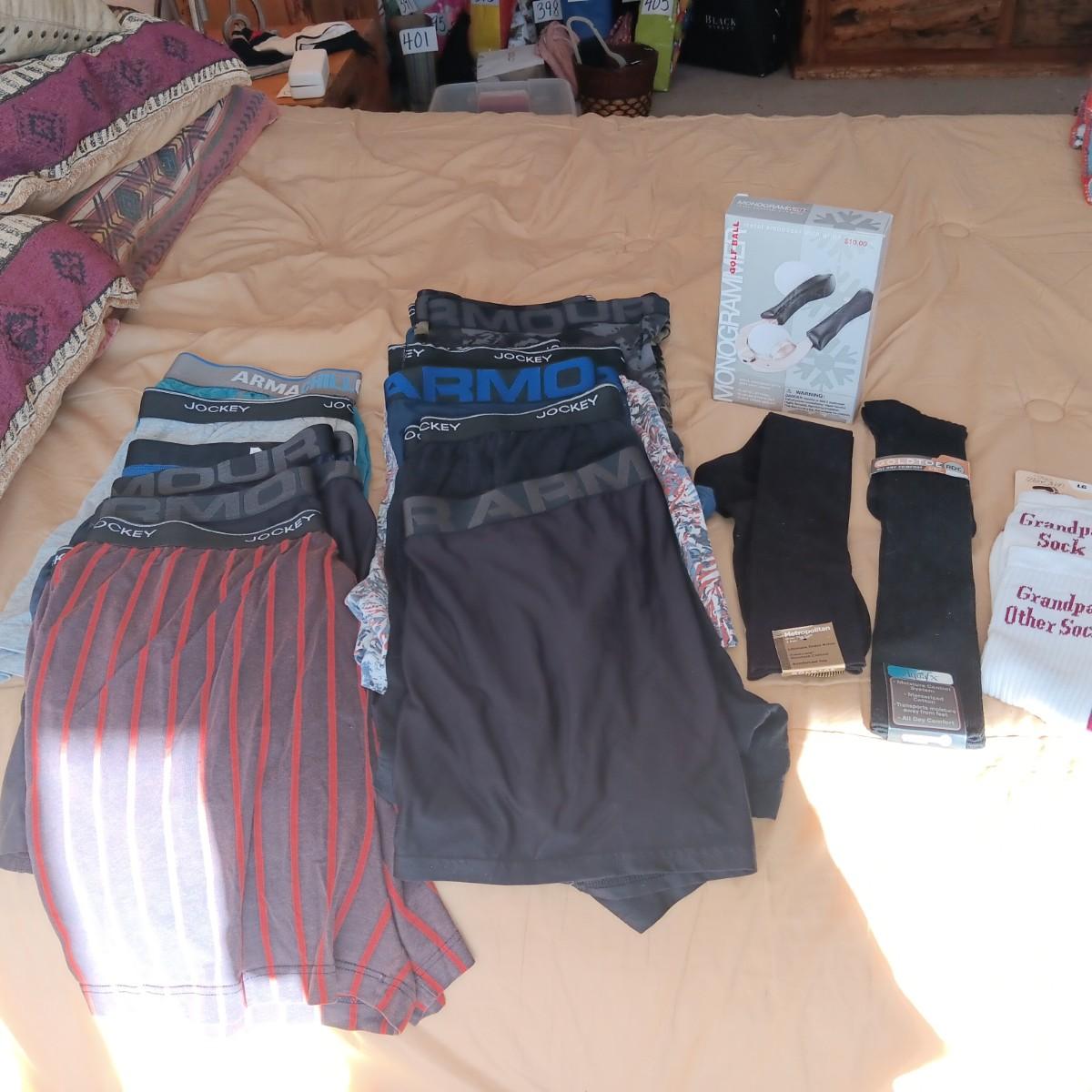 MEN'S UNDERWEAR (38), SOCKS AND GOLF BALL MONOGRAMMER