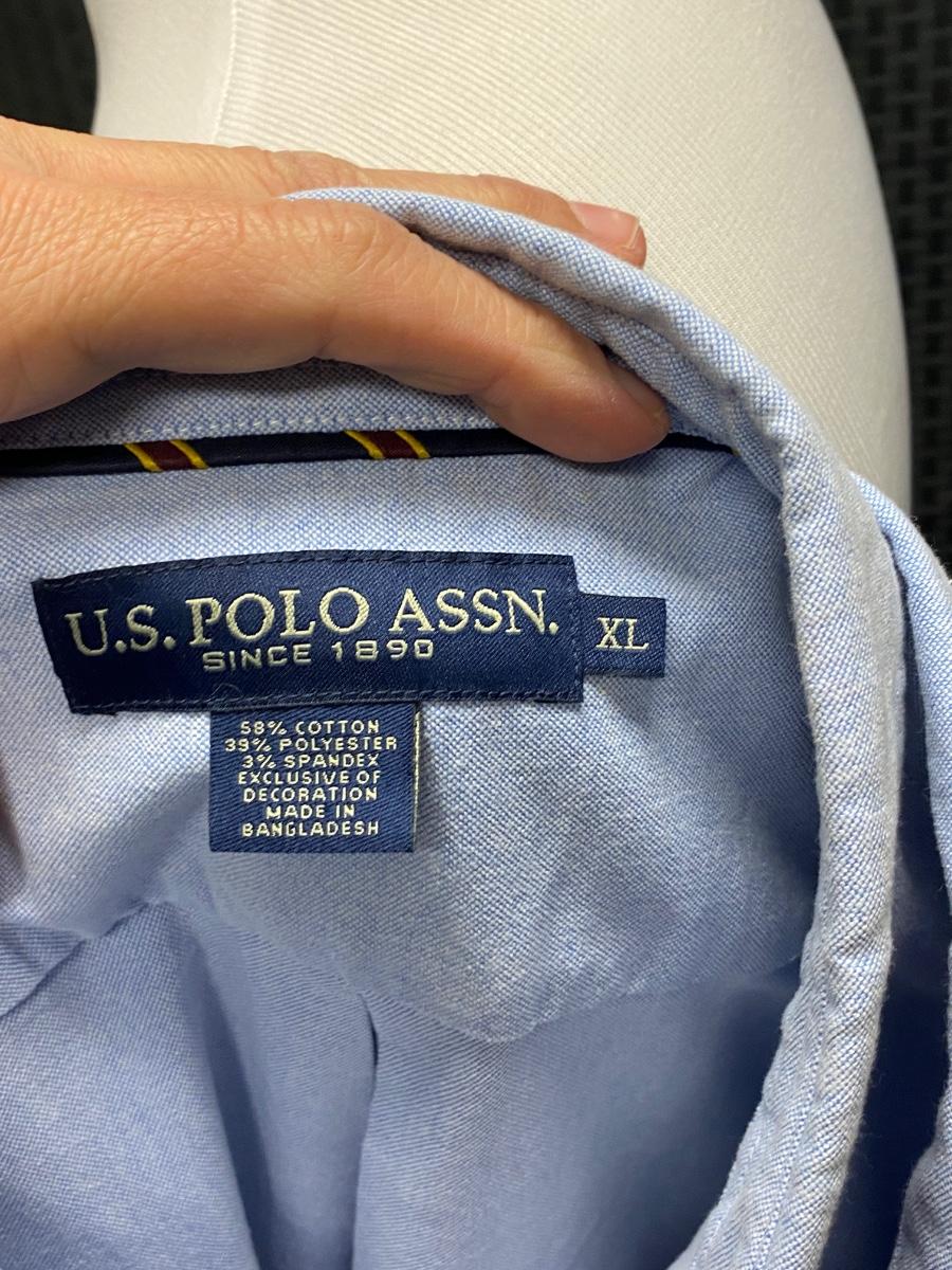 Men's US Polo Assn. Button Front Shirt. A very pale blue material, did not want to photograph well. In good condition. Size XL.