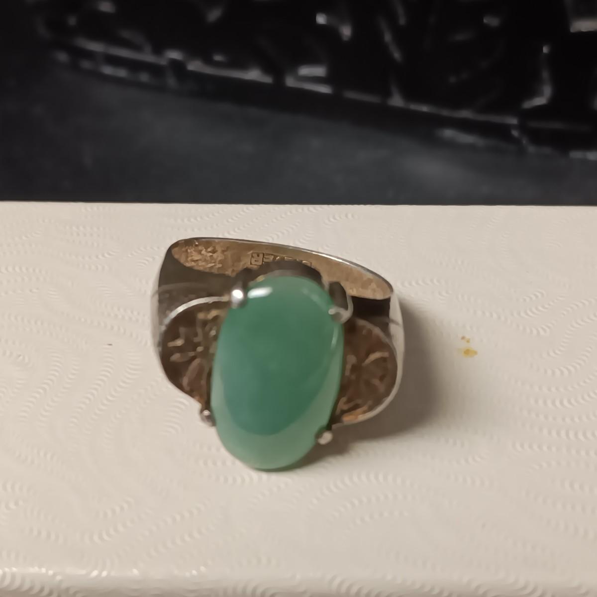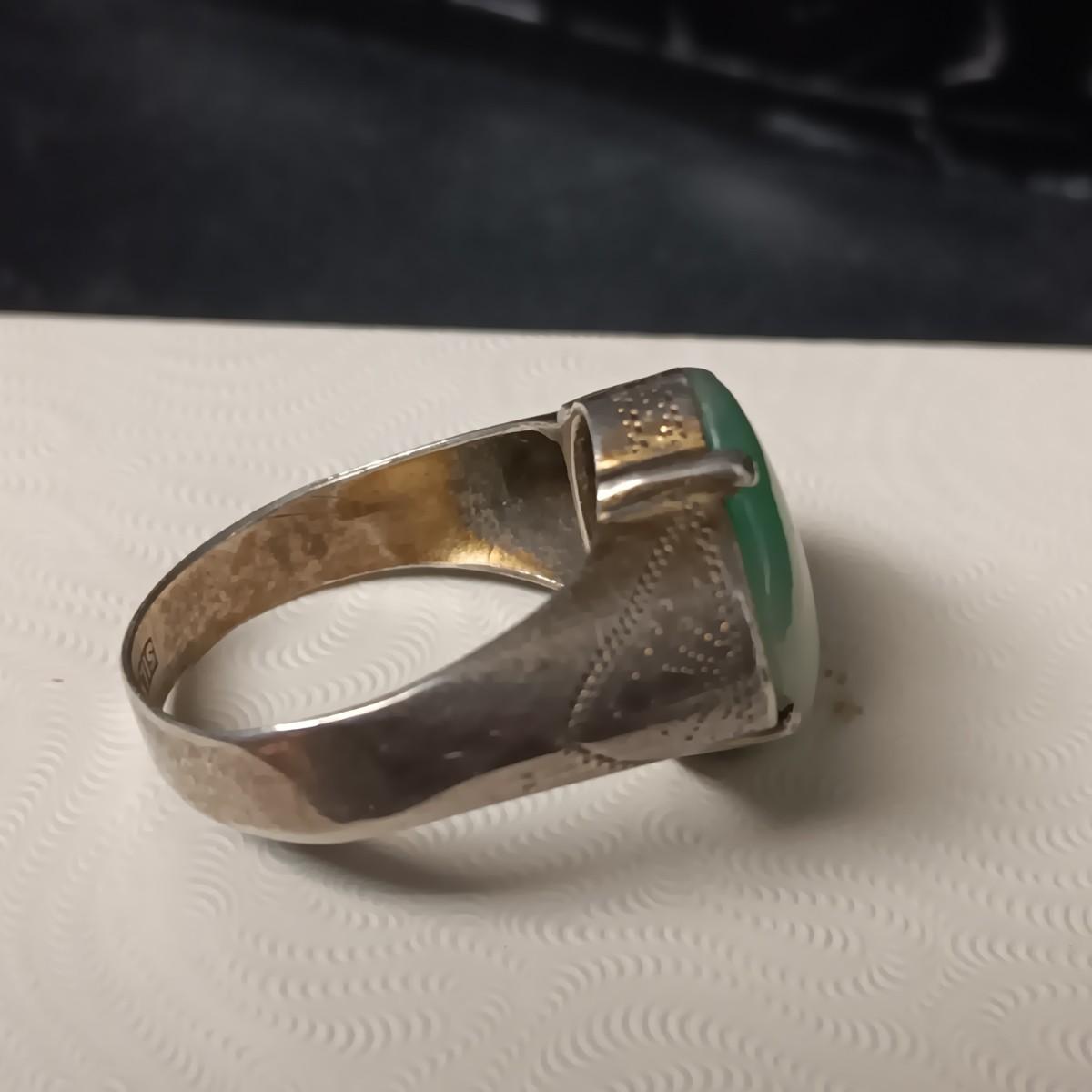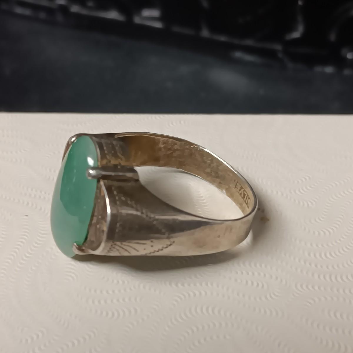 MEN'S VINTAGE STERLING AND JADE RING SIZE 10