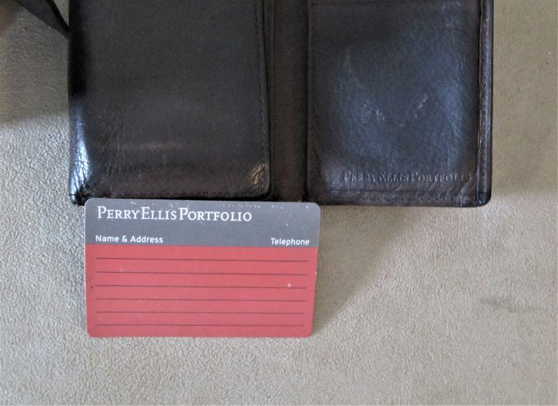 Mens Wallets (1) Perry Ellis Portfolio Brown Vintage LOT, (1) Black Mens Billfold Wallet. In Good Condition for its age.