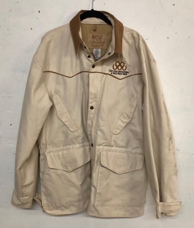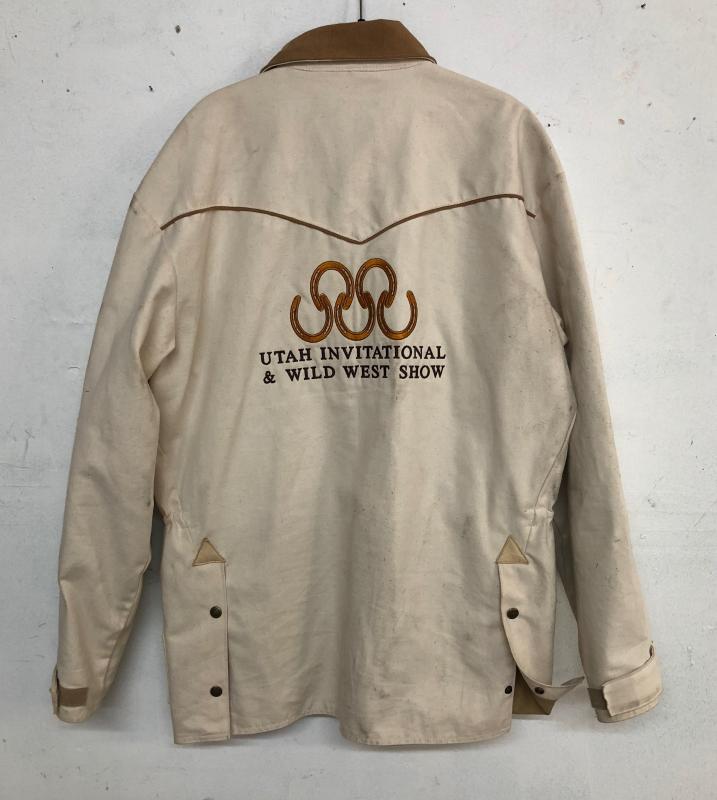 Here is a Size Medium men's canvas western wear coat embroidered with the 2002 Utah Invitational & Wild West Show logo....from the Shaefer Outfitters of Steamboat Springs, Colorado...Very good condition...