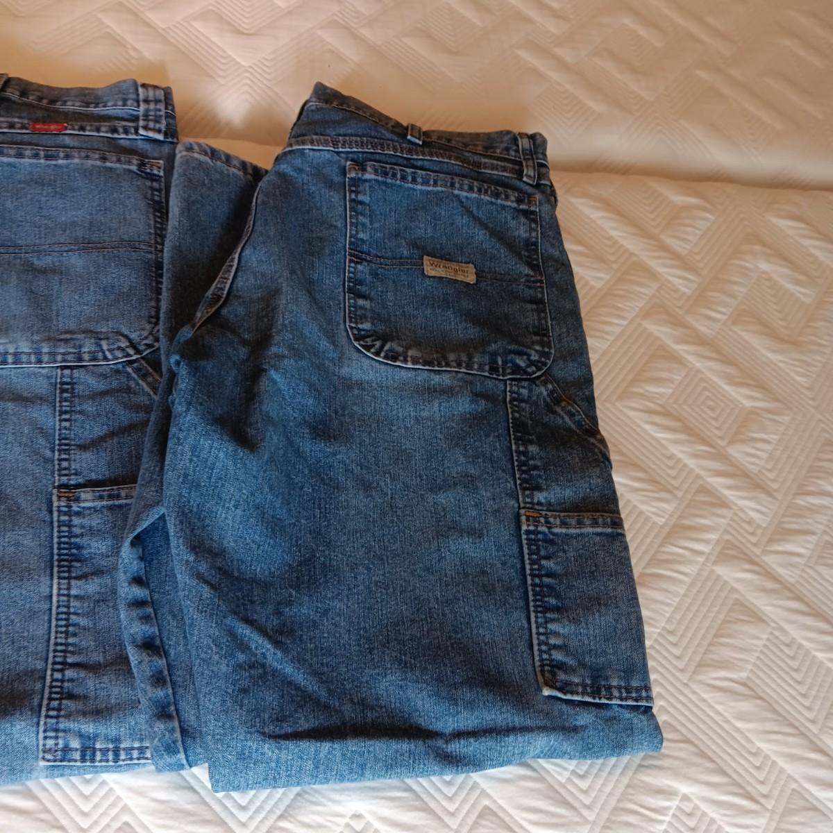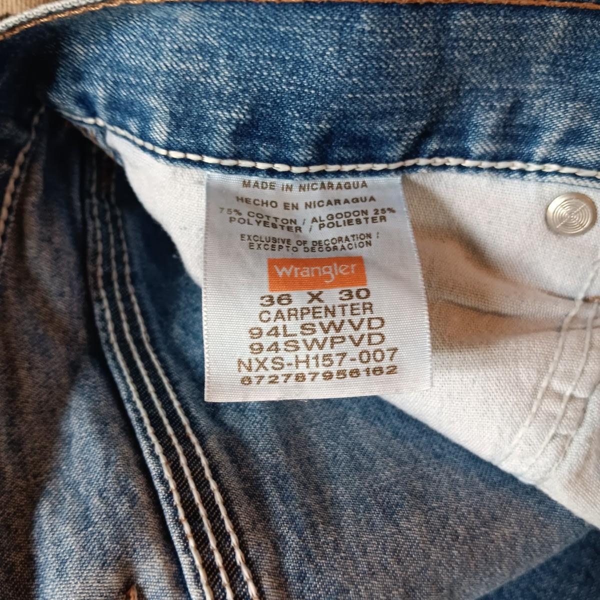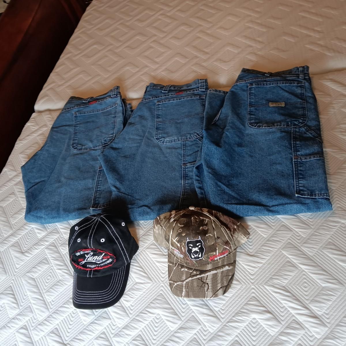 MEN'S WRANGLER CARPENTER JEANS (36X30) AND 2 BALL BAPS