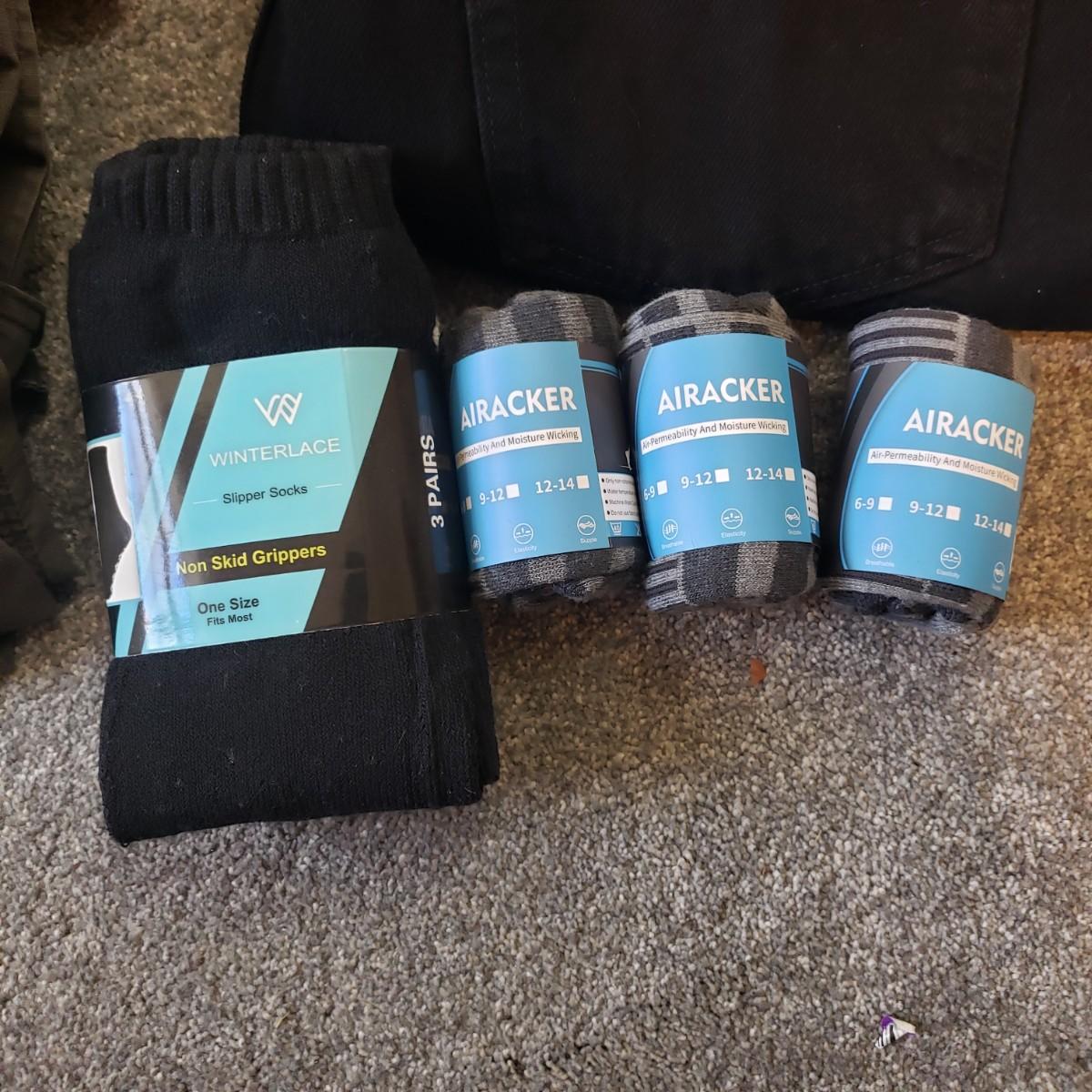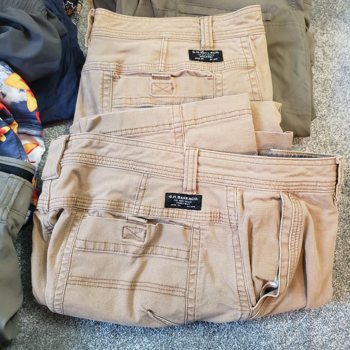 This is a lot of men's pants, shorts, swimsuits, and socks. The sizes vary slightly from 36"-40" with the length of 30". There are new socks, but the individual ones are not marked for size. See pictures for details.