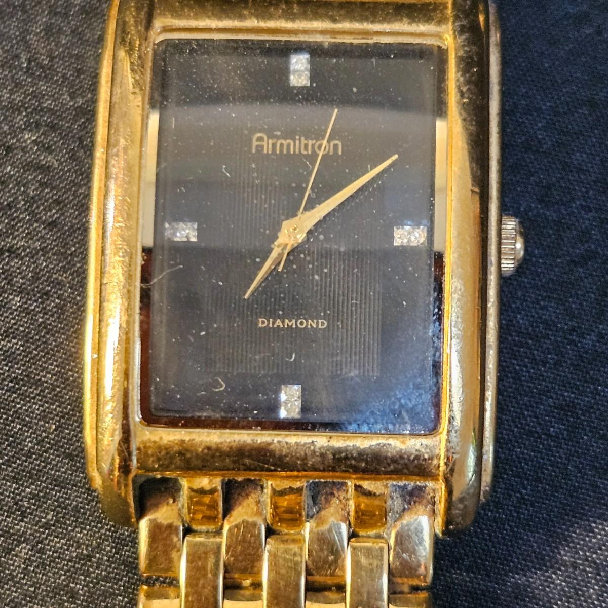 An assortment of men's wrist watches that need batteries. Includes two Timex watches, an Armitron, and Collize. Two watch bands that are approximately 8.5"L and a vintage Bulova travel clock. Shipping available