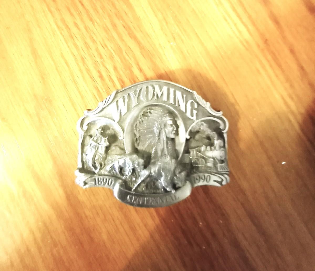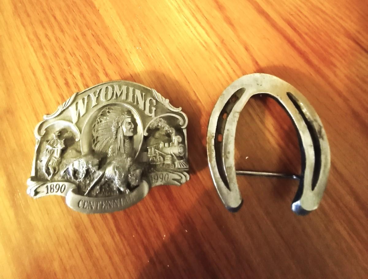 MENS WYOMING AND HORSESHOE BELT BUCKLE