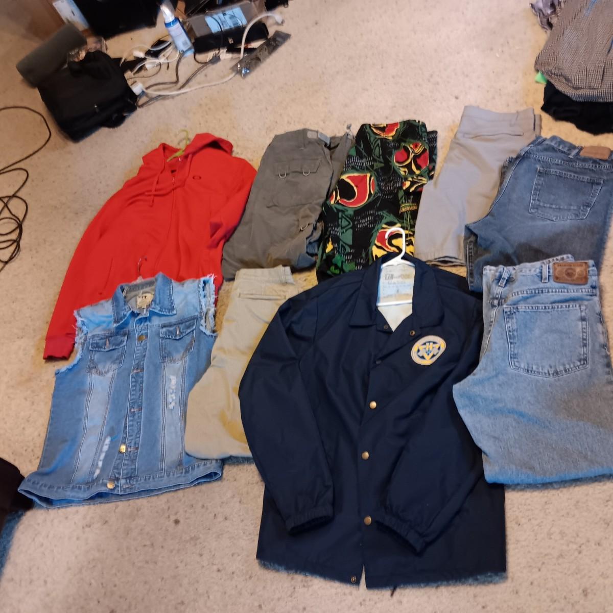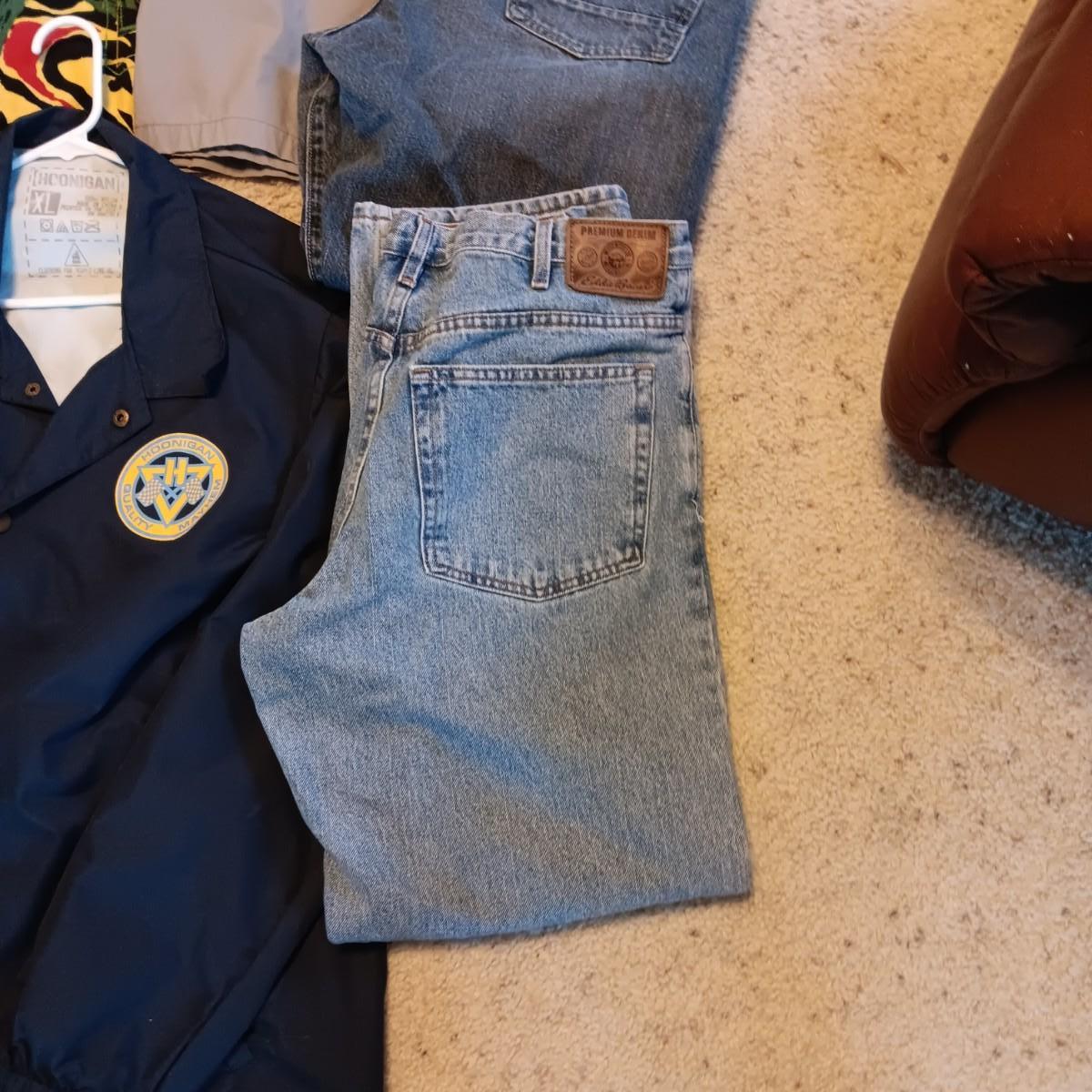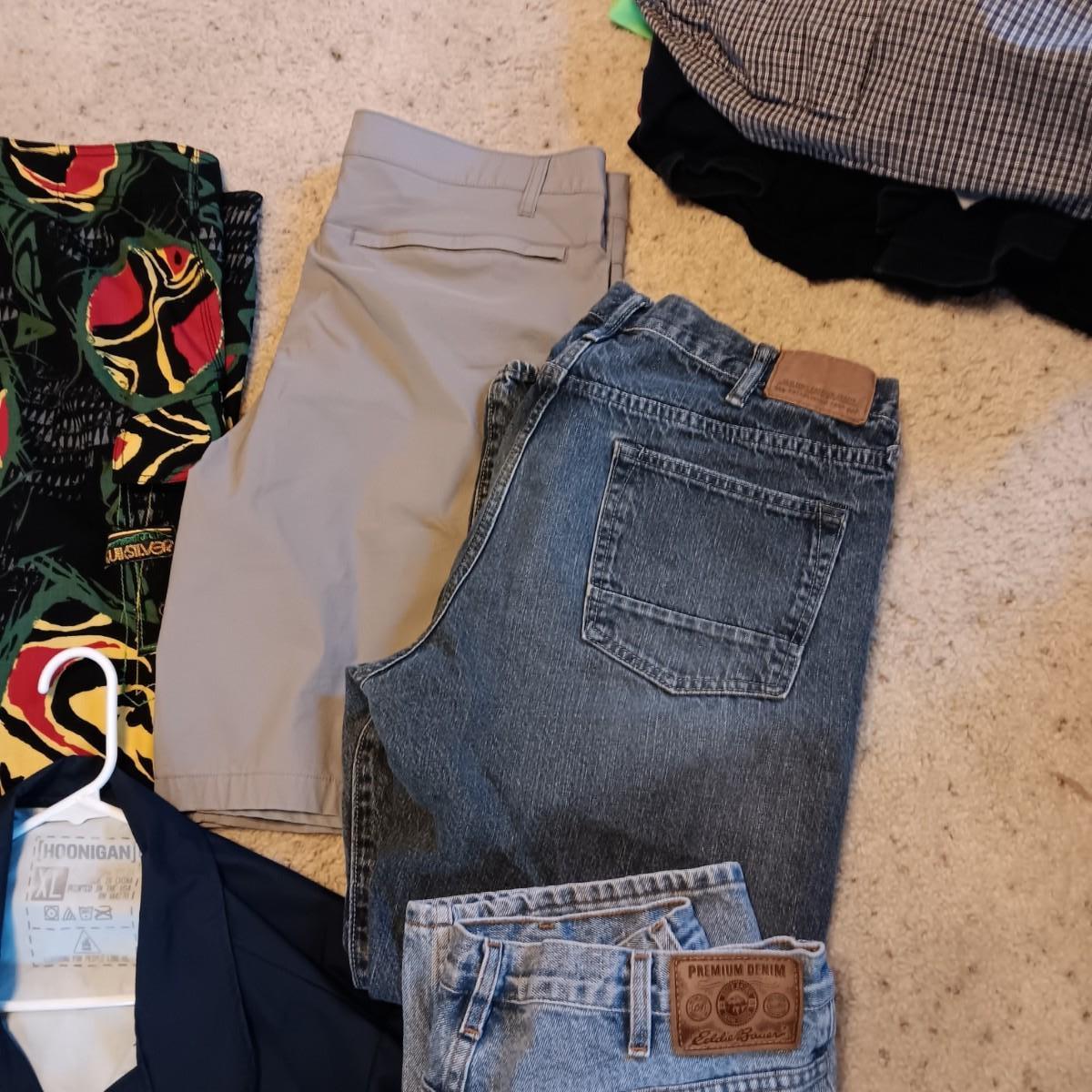 MEN'S XL JACKETS, SWIM TRUNKS, 36X30 JEANS