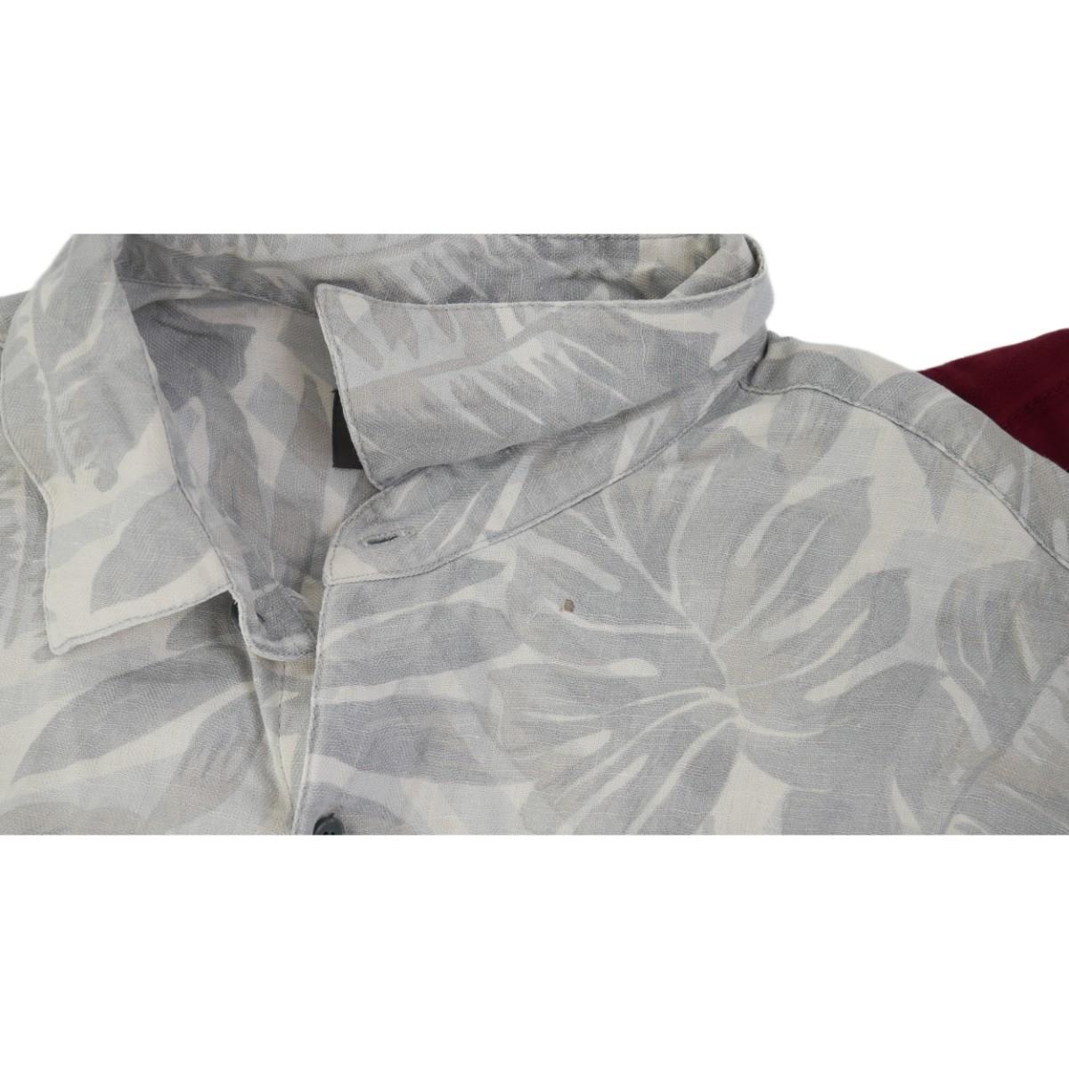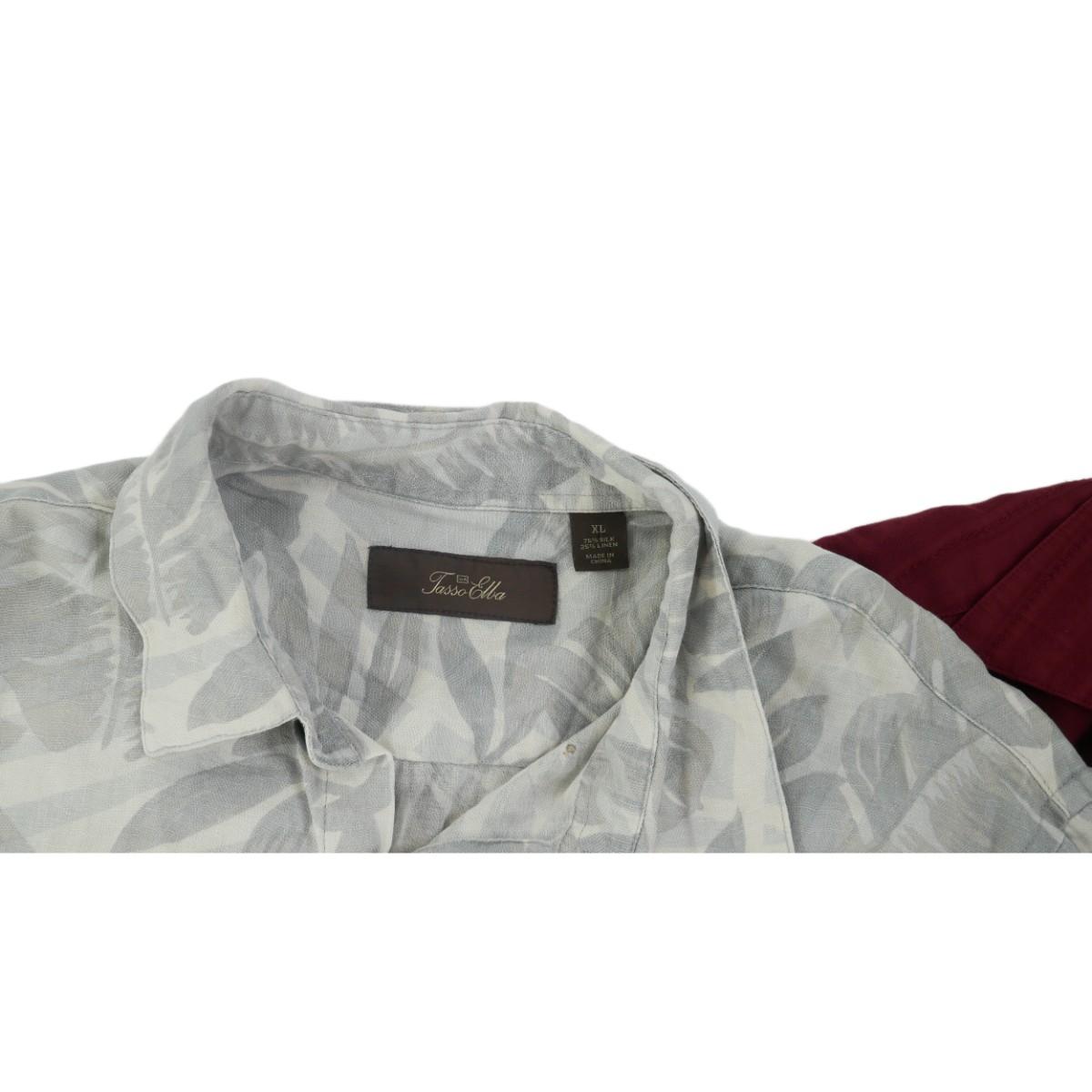 Tasso Ella silk and linen shirt, small stain under collar (see photo), Axcess maroon shirt is unsized but has similar shoulder length to Tasso Ella shirt minimal snagging on arm (see photo).