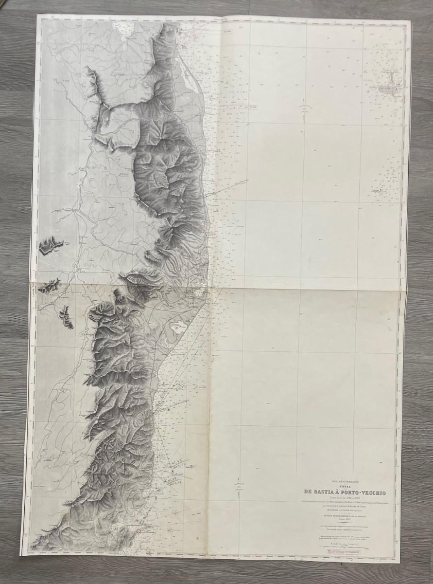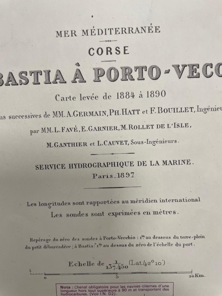 Description: MER MEDITERRANEE/ CORSE/ DE BASTIA A PORTO- VECCHIO/ Carte levee de 1884 a 1890. Sous la direction de M M. A. GERMAIN. PH. PHATT et F. BOUILLET Ingrenieur Hydrographes / Reproduction. Material: Paper Measurement approximate: 29" x 21” (Inches); Condition: Good