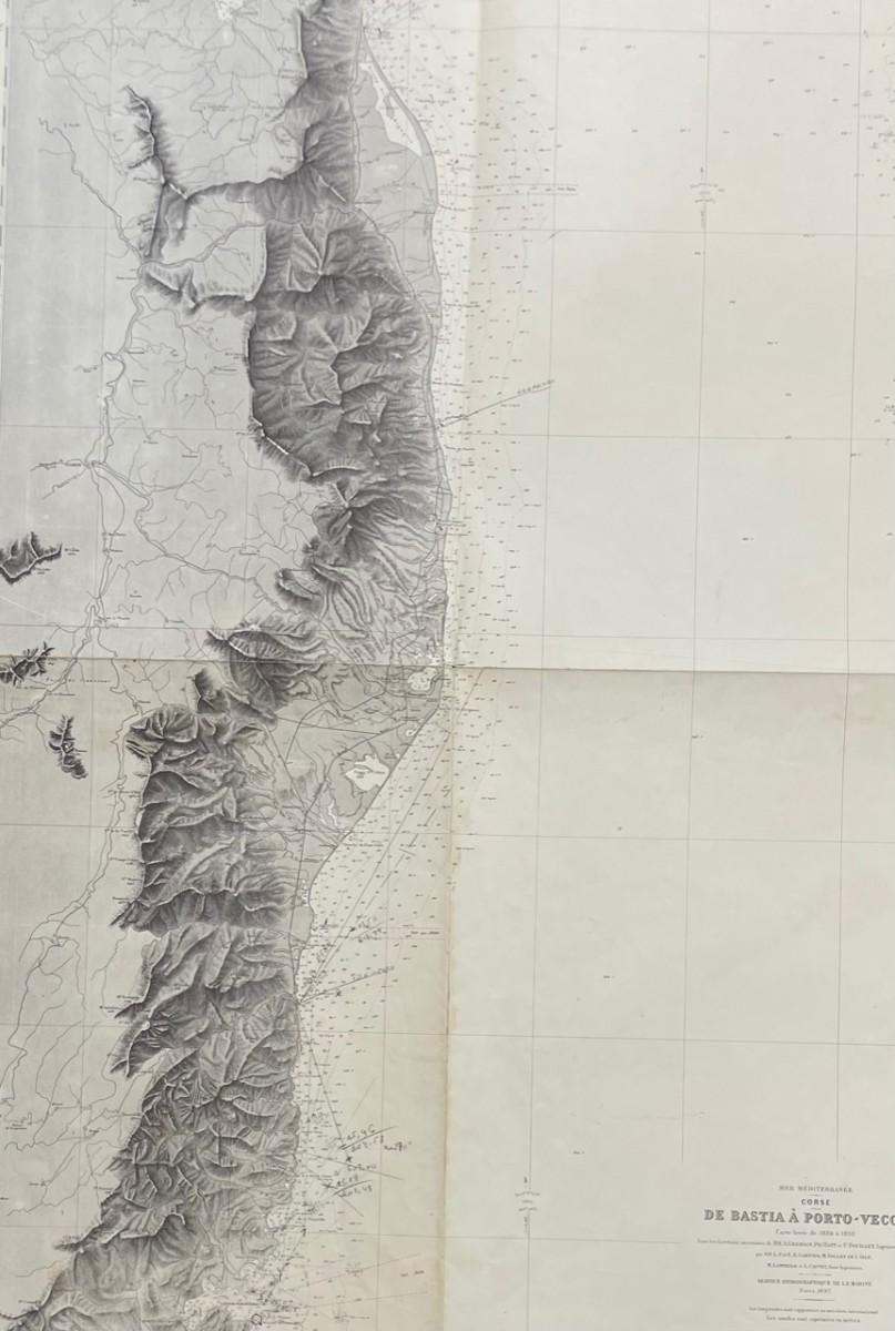 Description: MER MEDITERRANEE/ CORSE/ DE BASTIA A PORTO- VECCHIO/ Carte levee de 1884 a 1890. Sous la direction de M M. A. GERMAIN. PH. PHATT et F. BOUILLET Ingrenieur Hydrographes / Reproduction. Material: Paper Measurement approximate: 29" x 21” (Inches); Condition: Good