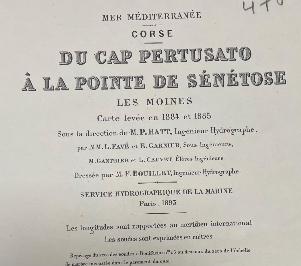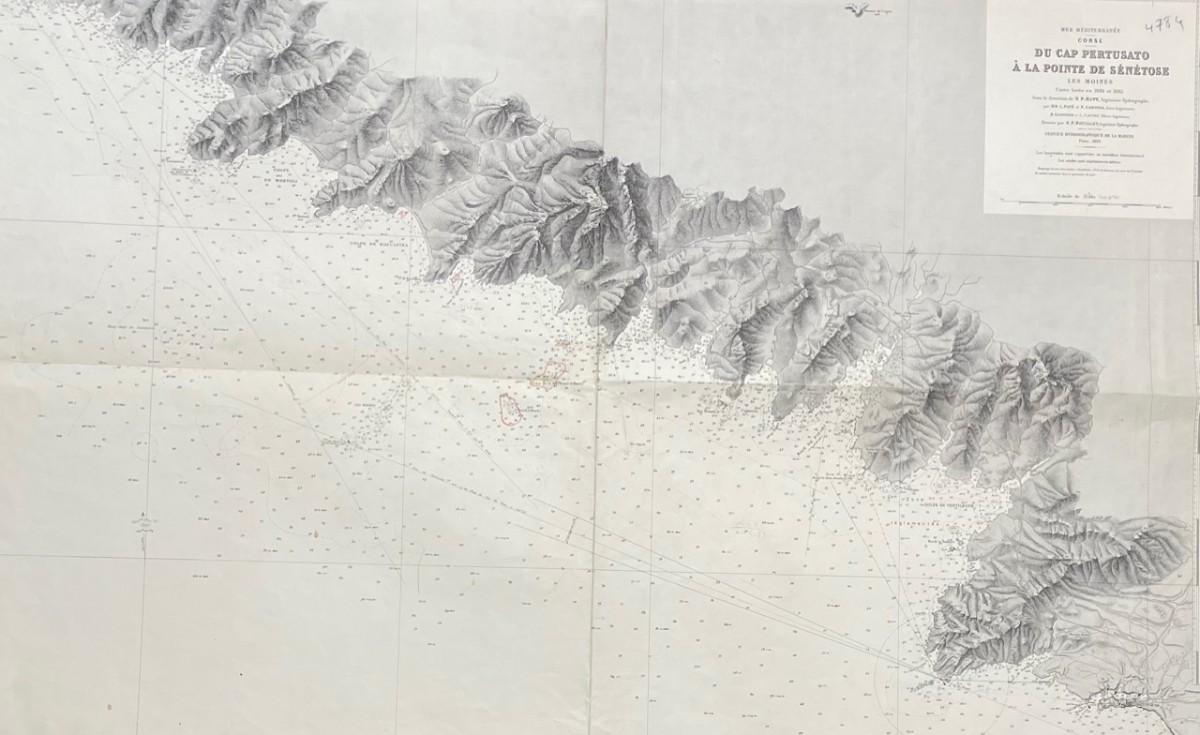Description: MER MEDITERRANEE / CORSE DU CAP PERTUSATO A LA POINTE DE SENETOSE LES MOINES Carte levee en 1884 et 1885 M. P. HATT, Ingrenieur Hydrographe / - Reproduction. Material: Paper Measurement approximate: 29" x 21” (Inches) Condition: Good
