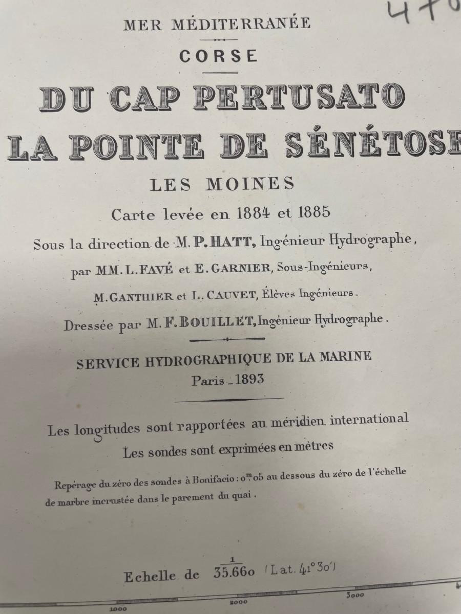 Description: MER MEDITERRANEE / CORSE DU CAP PERTUSATO A LA POINTE DE SENETOSE LES MOINES Carte levee en 1884 et 1885 M. P. HATT, Ingrenieur Hydrographe / - Reproduction. Material: Paper Measurement approximate: 29" x 21” (Inches) Condition: Good