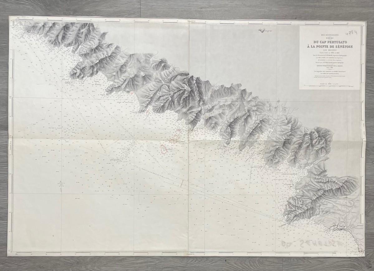 Description: MER MEDITERRANEE / CORSE DU CAP PERTUSATO A LA POINTE DE SENETOSE LES MOINES Carte levee en 1884 et 1885 M. P. HATT, Ingrenieur Hydrographe / - Reproduction. Material: Paper Measurement approximate: 29" x 21” (Inches) Condition: Good