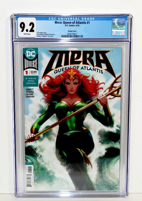 MERA: QUEEN of ATLANTIS #1 CGC 9.2 Stanley Artgerm Lau Variant Cover 2018 DC Comics