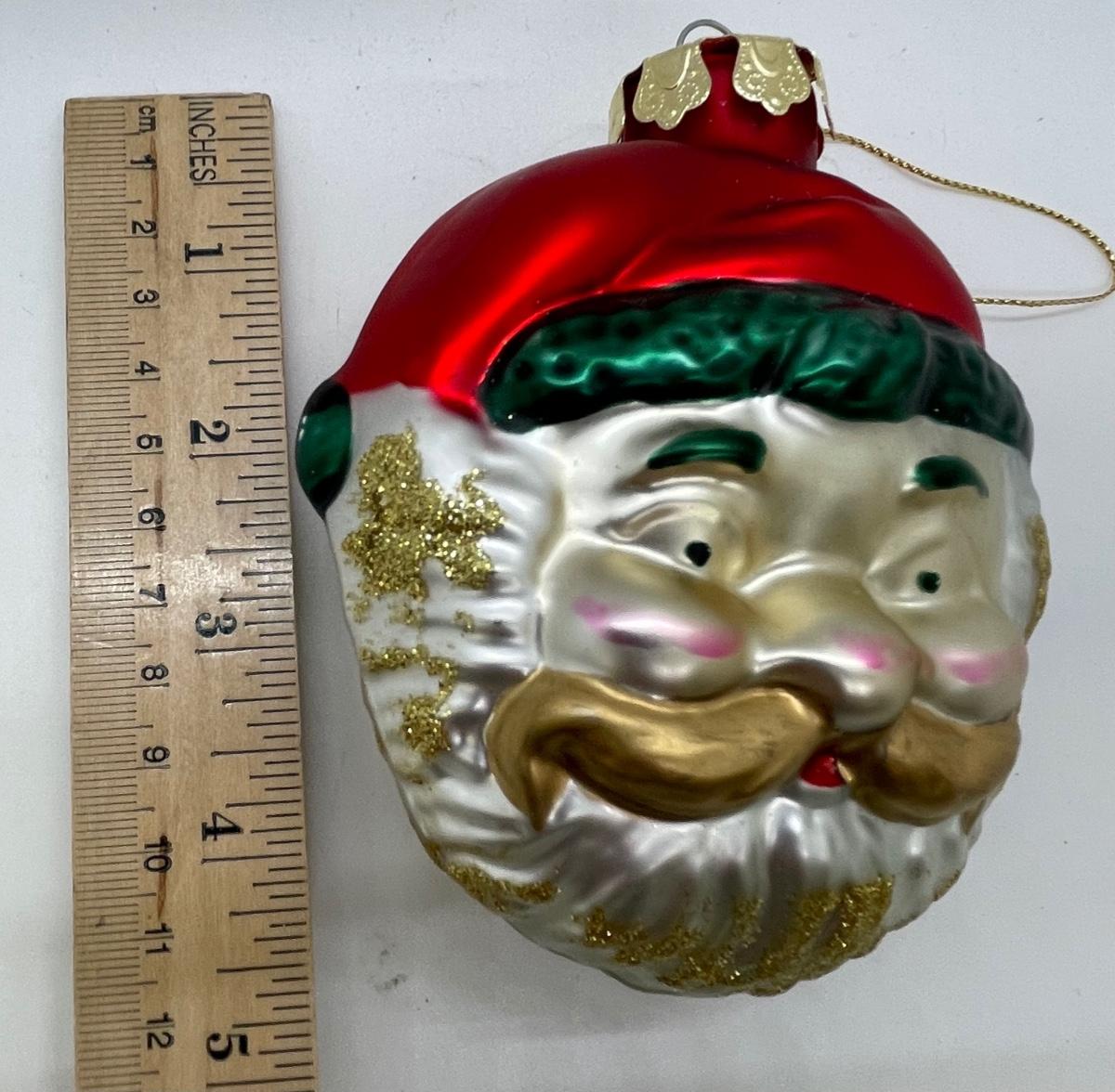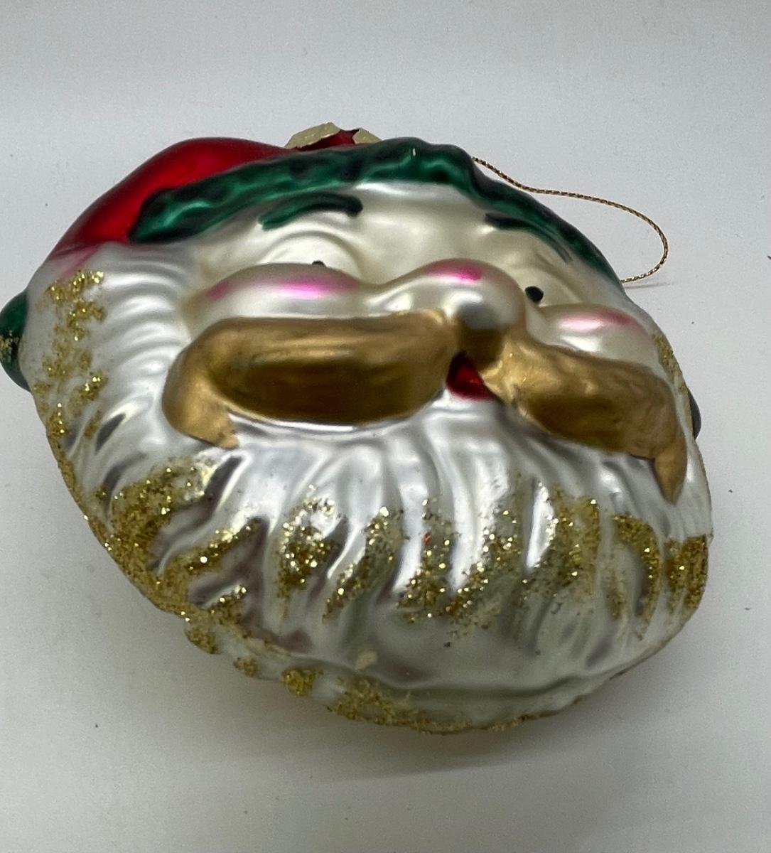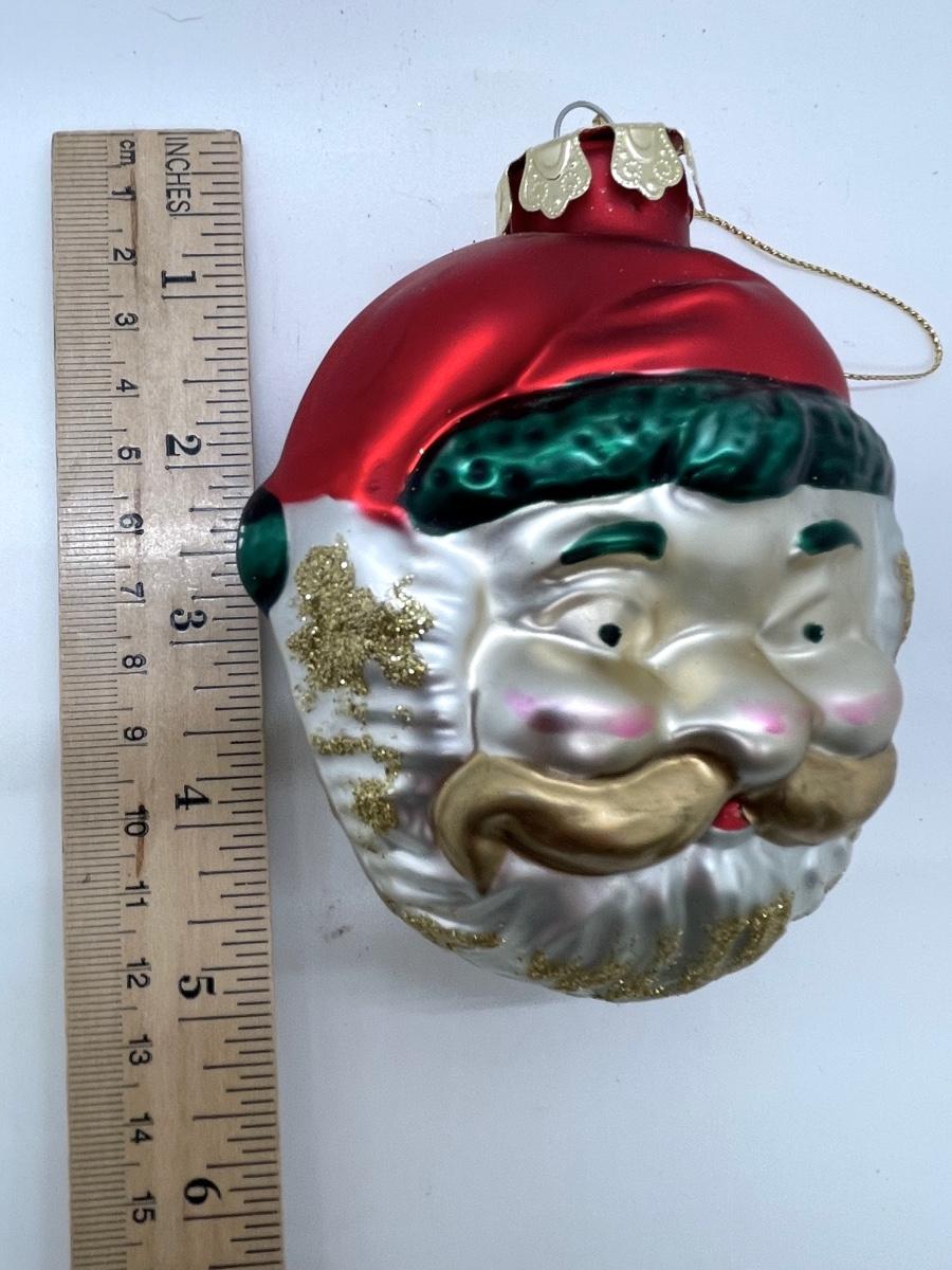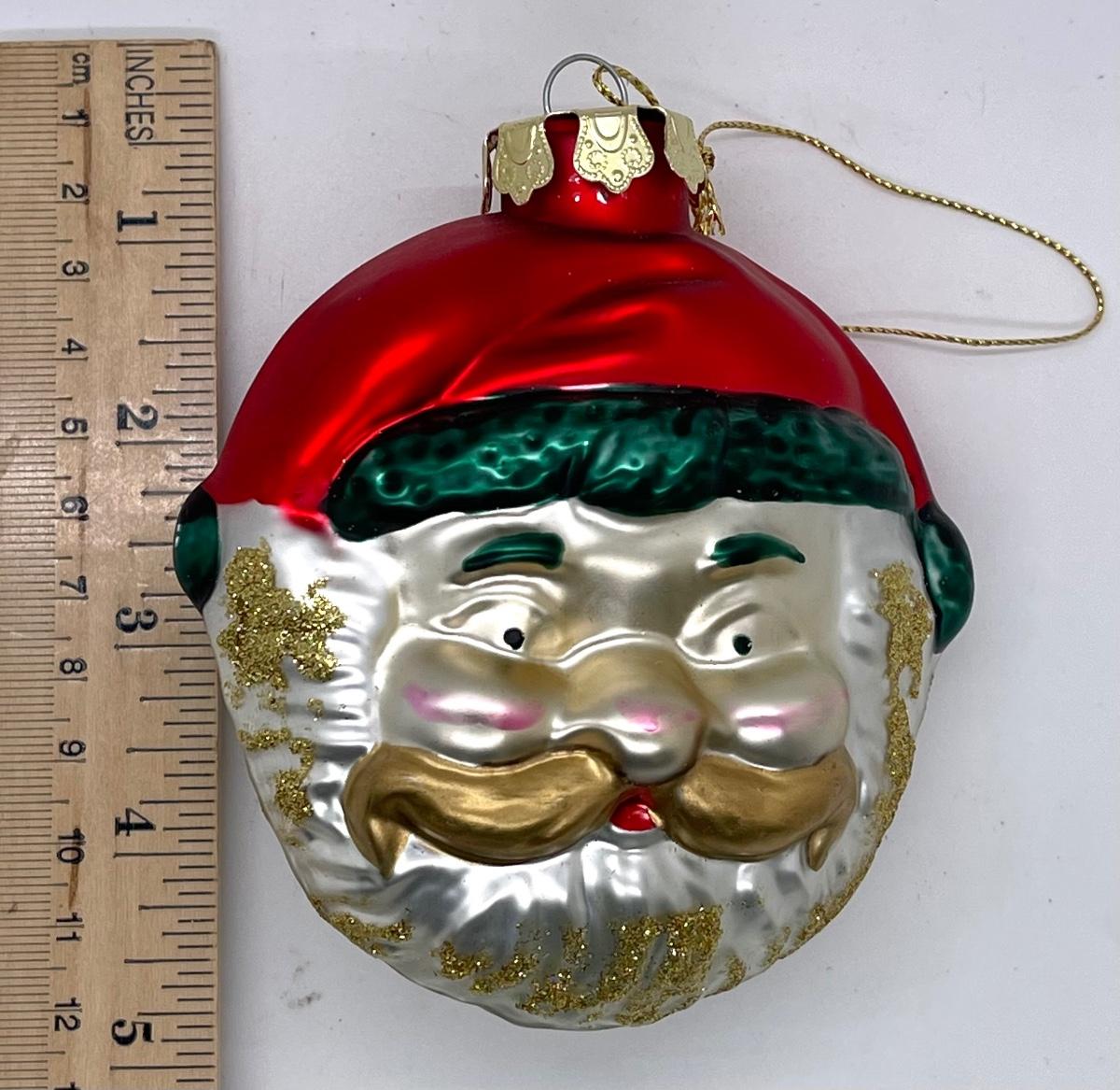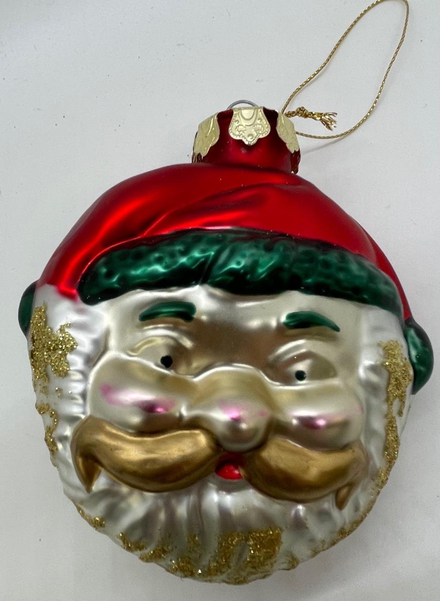 Vintage Santa Claus Face Round Blown Mercury Glass Christmas Holiday Tree Ornament