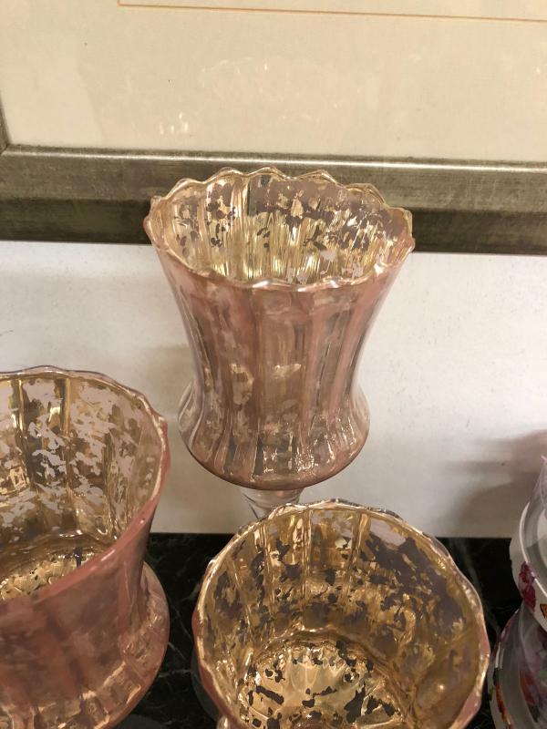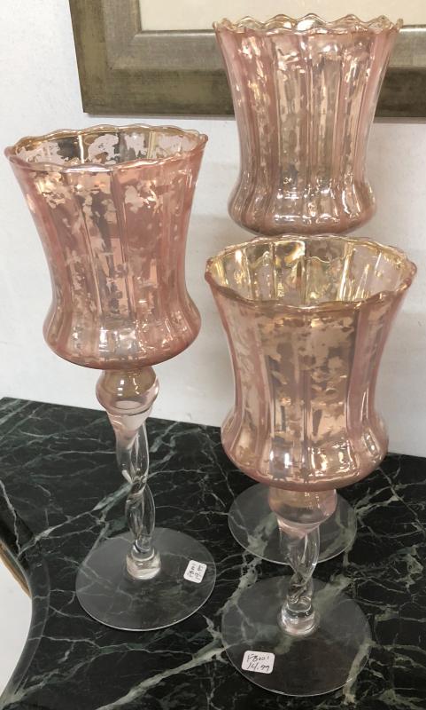 No chips or cracks made to look like old mercury glass, 14", 12" and 10" tall respectively.