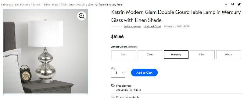 Katrin Modern Glam Double Gourd Table Lamp in Mercury Glass with Linen Shade - New, $62 @ Walmart