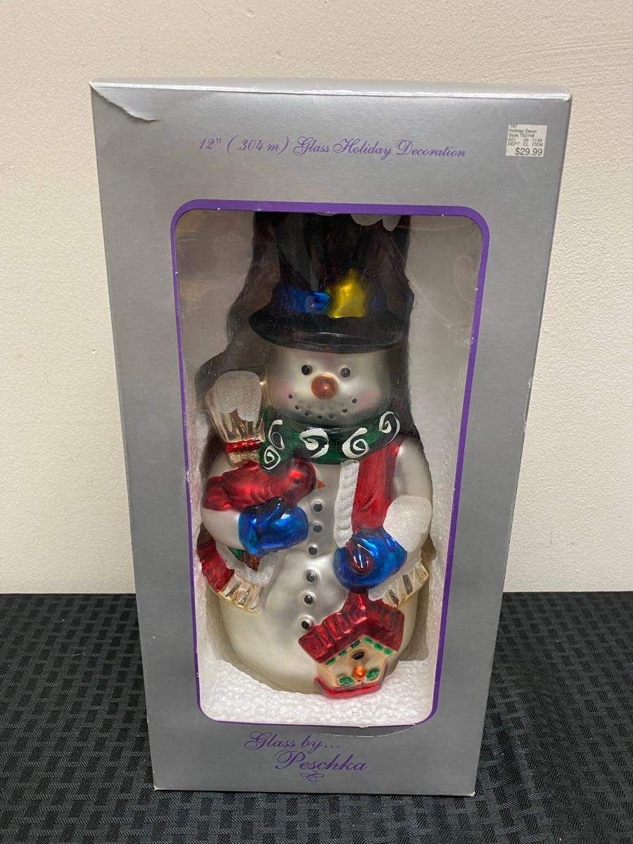 Vintage Mercury Glass Snowman Christmas Holiday Decor Ornament by Peschka. Comes in original box. Good condition.