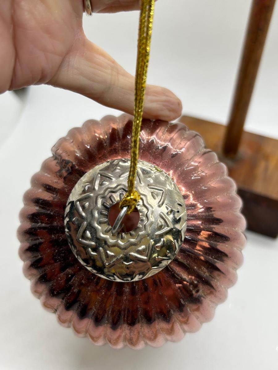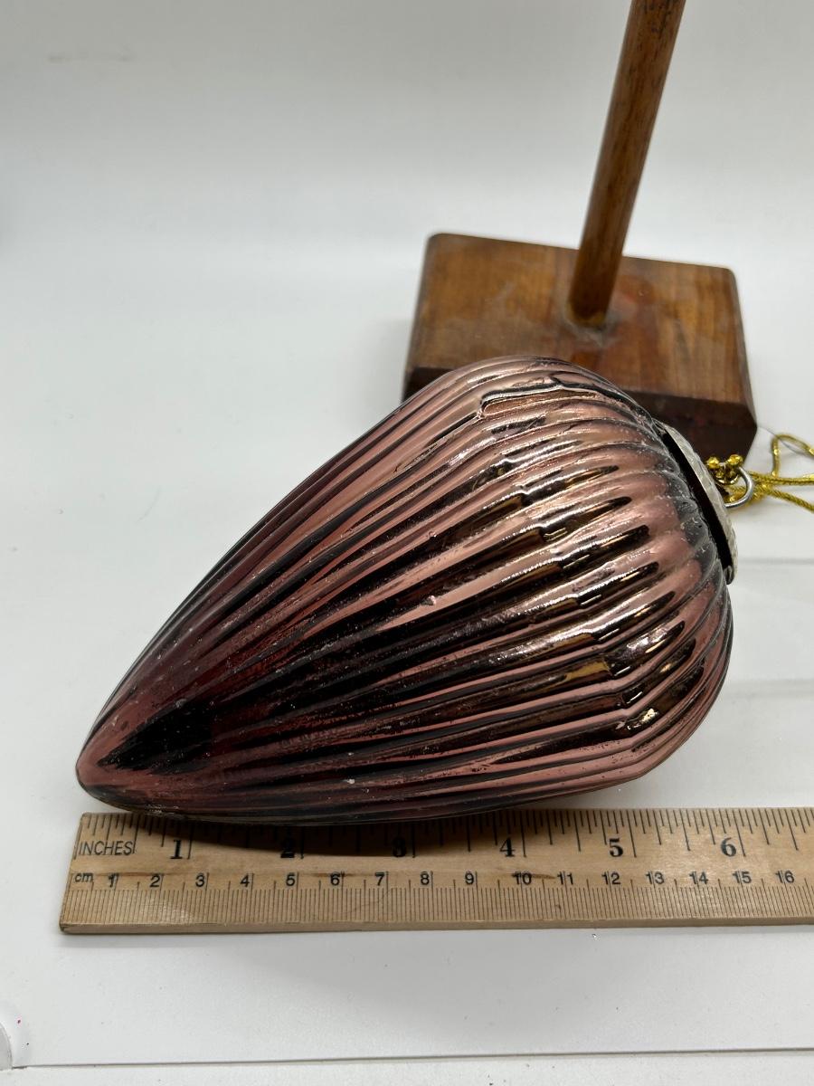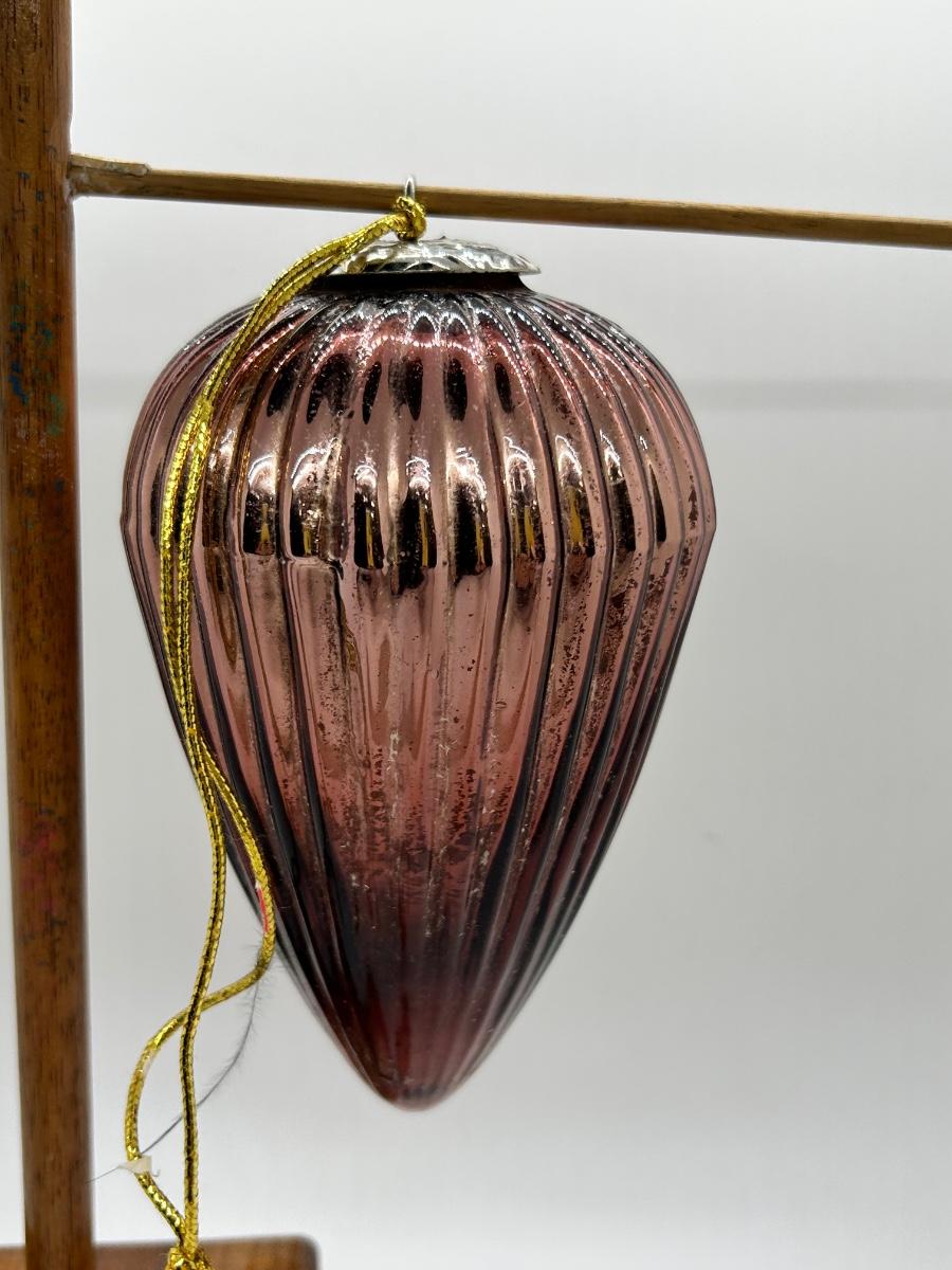 Mercury Glass Style Heavy Spinning Top Raindrop Shaped Christmas Holiday Tree Ornament Burgundy Brown Color. In good condition. Heavy. About 7" size.