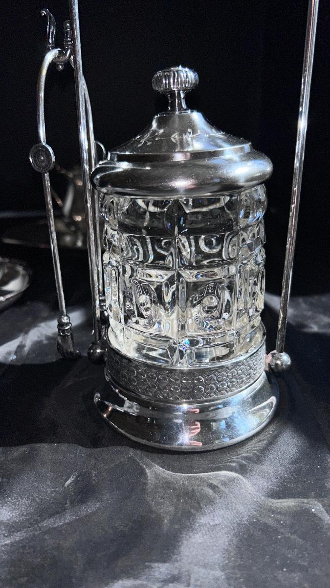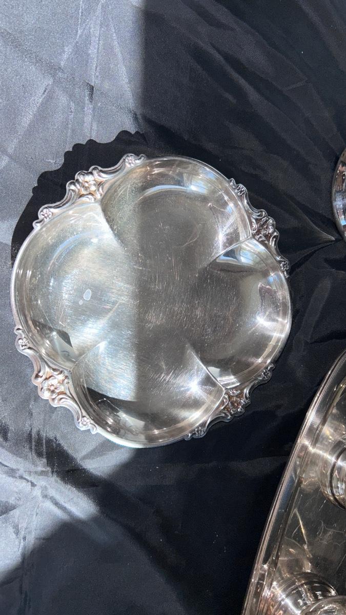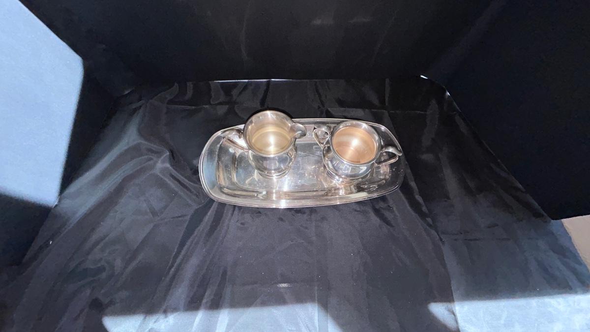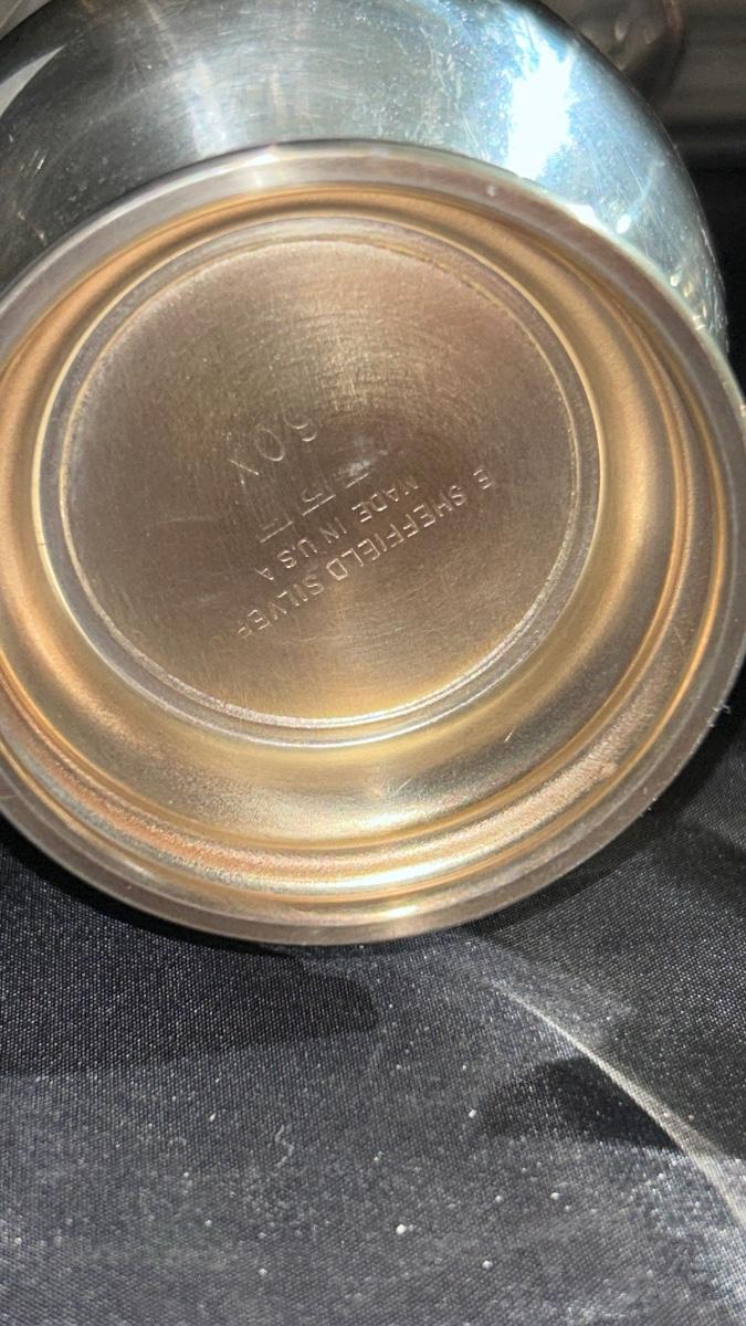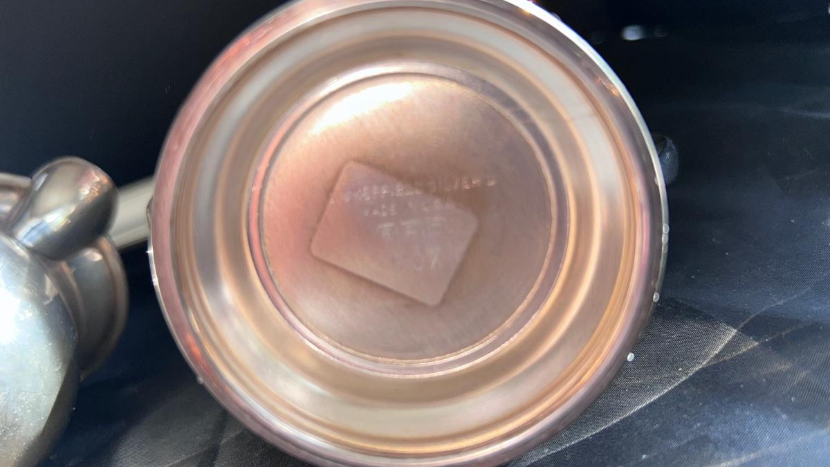 MERIDIAN, SILVER PLATE COMPANY QUADRUPLE PLATE, PICKLE SERVER, AND SHEFFIELD SILVER CREAM AND SUGAR BOWLS