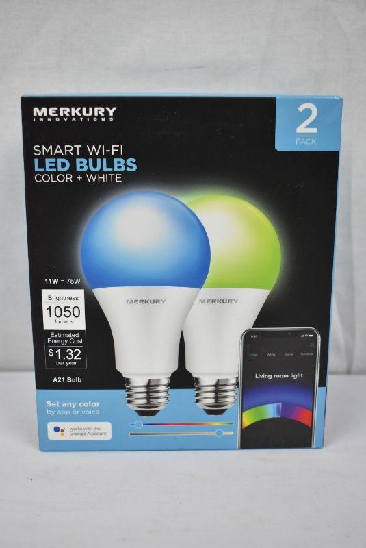 Merkury Innovations A21 Smart Light Bulb, 75W Color LED, 2-Pack - New