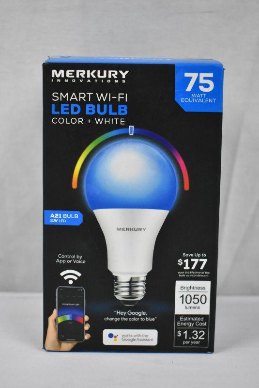 Merkury Innovations A21 Smart Light Bulb, 75W Color LED, 1-Pack. Open Box - New